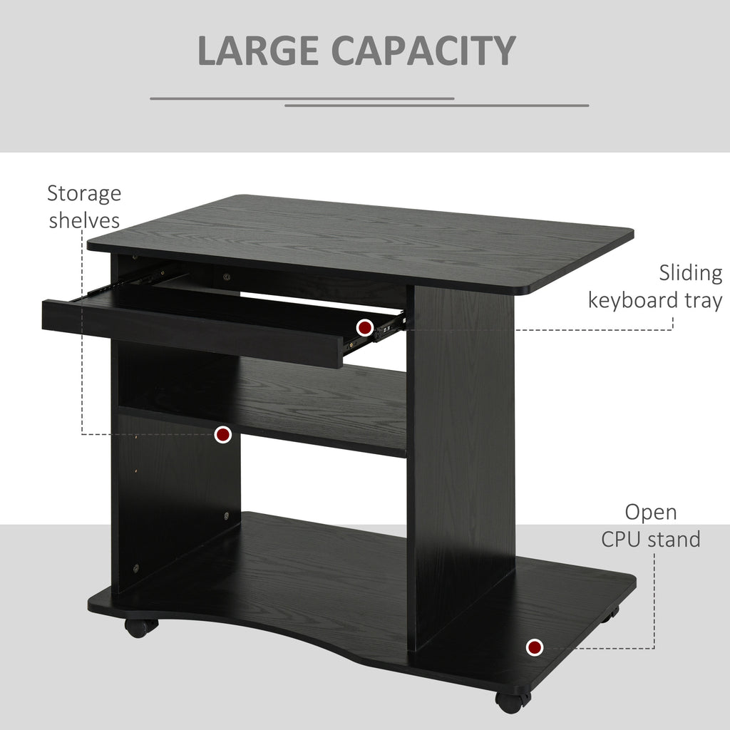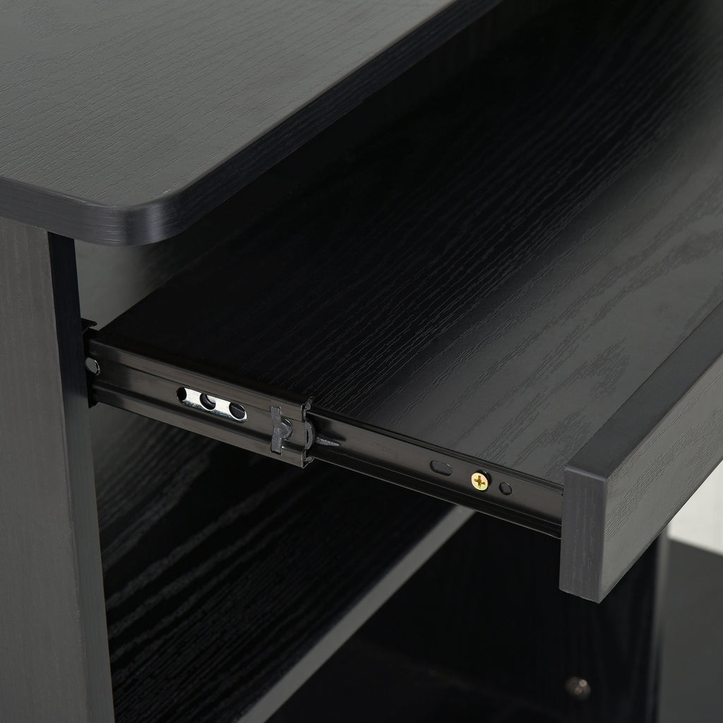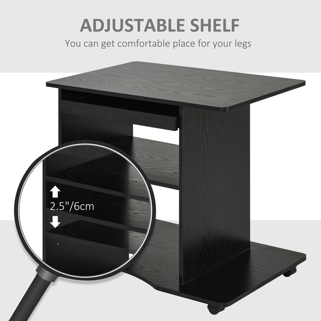 Efficiently save space with this computer desk from HOMCOM. This office desk features a pull out sliding keyboard, an adjustable middle shelf for books, a bottom shelf for accessories, and side open shelf for a CPU, you can put your things neat and clean. Constructed from steel and MDF board with a smooth and easy-to-clean surface, the home desk is durable and easy to maintain. Our small desk has a contemporary look that will blend beautifully into any style decor. Check out this office desk, as it's a wise choice for you to buy our office desk to enrich your study furniture!