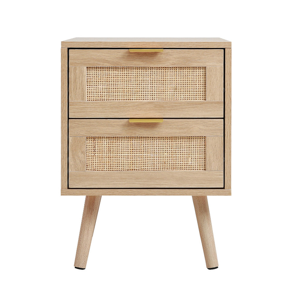Cottonfy UK 2 Pack Wood And Rattan Bedside Cabinet