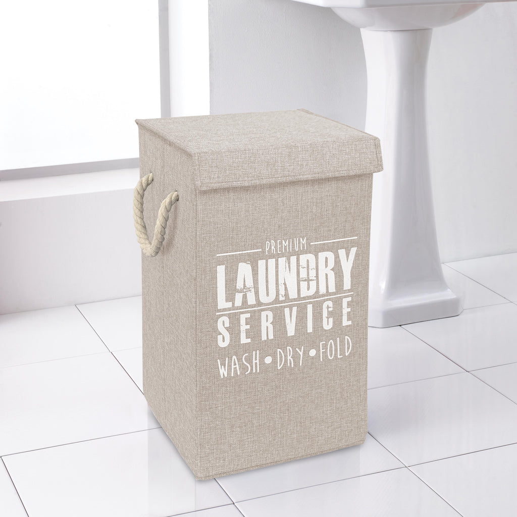 Large "Premium Laundry Service" Design Laundry Hamper 31x31x52cm - Natural