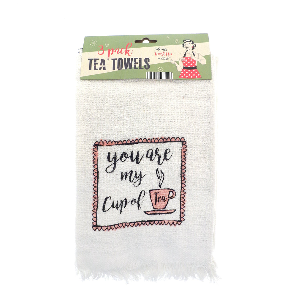 Country Club Tea Towels Pack of 3 - Cup of Tea 100% Cotton Wash Instruction : Machine washable @ 40 degrees