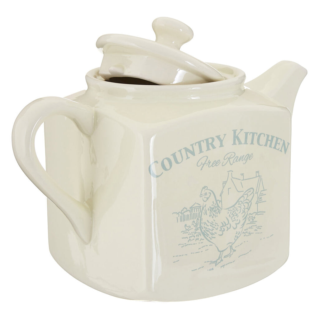 The pot features a beautiful, soft blue pastoral hen and farmhouse design which will make a great centrepiece on your table during breakfast, lunch and dinner. Made using durable cream dolomite, the teapot is ideal for everyday use. An easy to remove lid fits neatly on top ensuring you can fill with ease and clean with minimum fuss. The curved handle allows for a comfortable grip ensuring you can pour the tea with confidence.