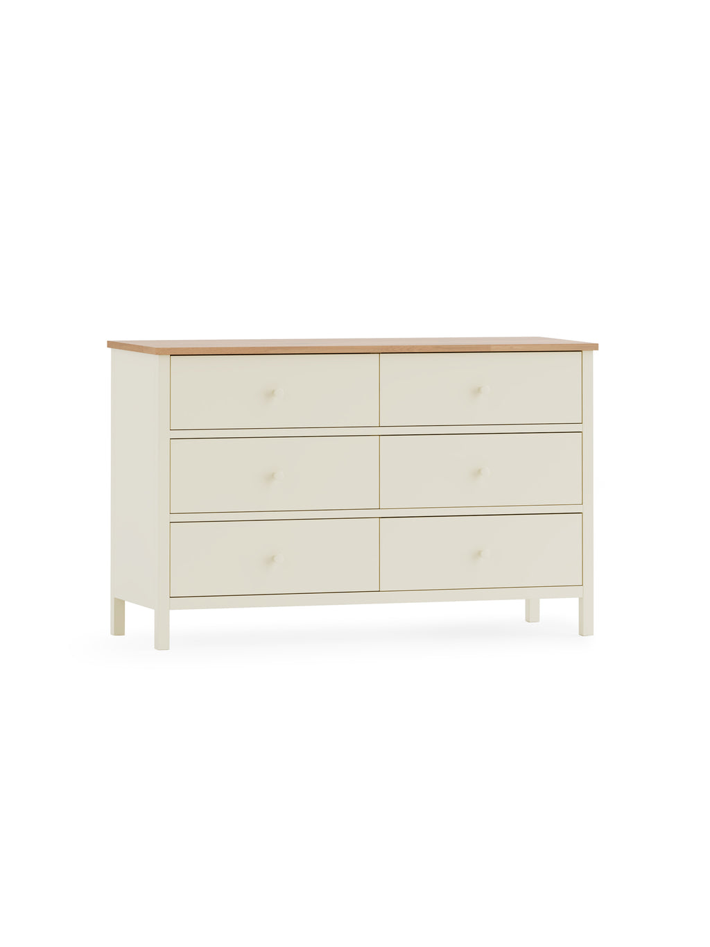 Transform your bedroom with the Coxmoor 6 Drawer Chest in a sophisticated Ivory and Oak finish. This beautifully crafted chest features six spacious drawers, each with sleek knob handles, offering plenty of room for your clothing, bedding, and more. The elegant combination of Ivory and Oak adds warmth and style to your space, making it a perfect addition to any room. Built to last and requiring minimal assembly, this chest provides both practical storage and timeless design.
