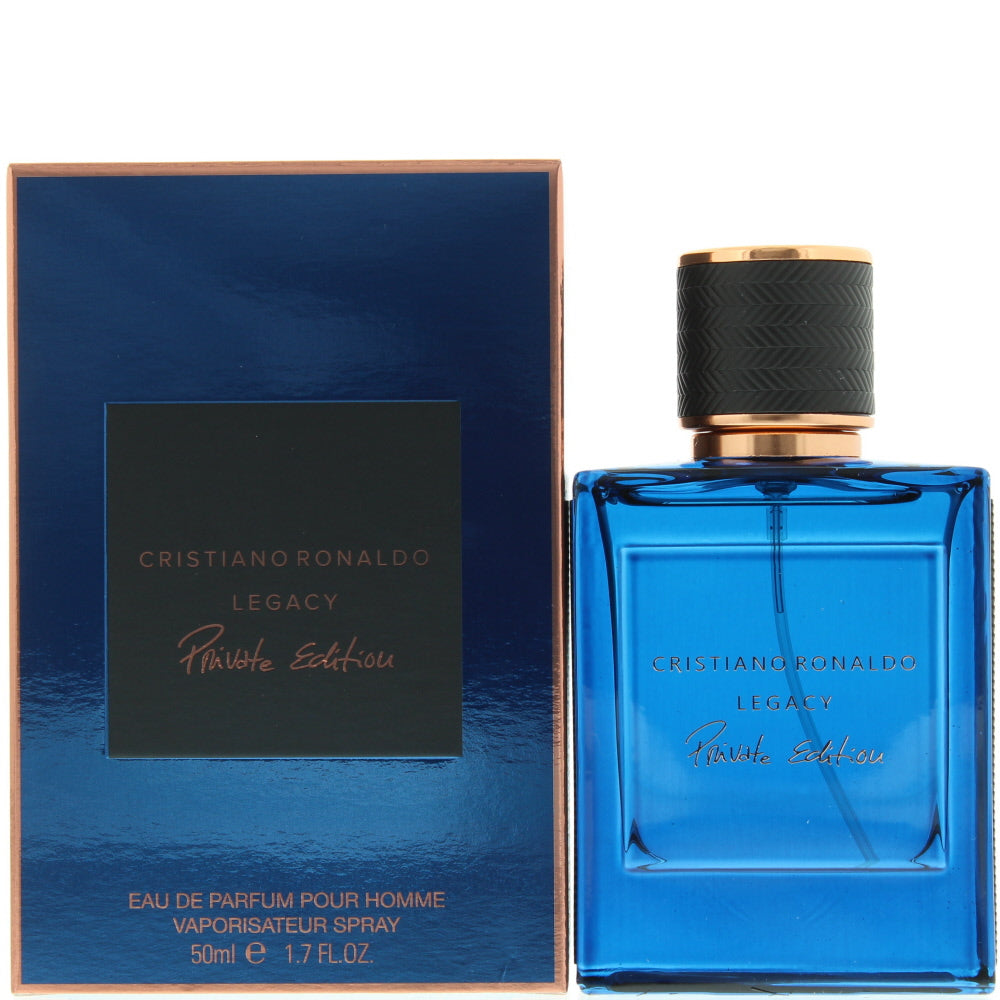 Cristiano Ronaldo Legacy Private Edition is a woody aromatic fragrance for men. Top notes basil leaf neroli maple sap. Middle notes cedar sandalwood woody notes tonka bean. Base notes amber vanilla moss musk. Legacy Private Edition was launched in 2016.