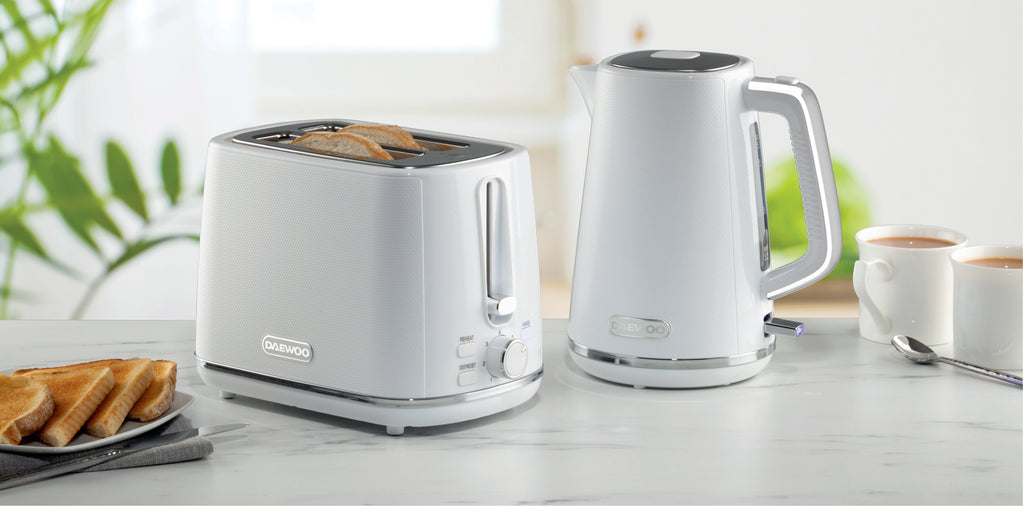 Efficiency is key with this kettle, thanks to its high-powered 3KW element that guarantees quick boiling for your beverages and cooking needs. It's user-oriented with features like an automatic shut-off for added safety, a detachable limescale filter for hassle-free cleaning, and transparent water level guides for easy measuring. The inclusion of a power-on LED light further adds to its convenience. Backed by a 3-year warranty, the Stirling Collection jug kettle from Daewoo is not just a reliable kitchen appliance but also a chic addition to modernise any kitchen decor.