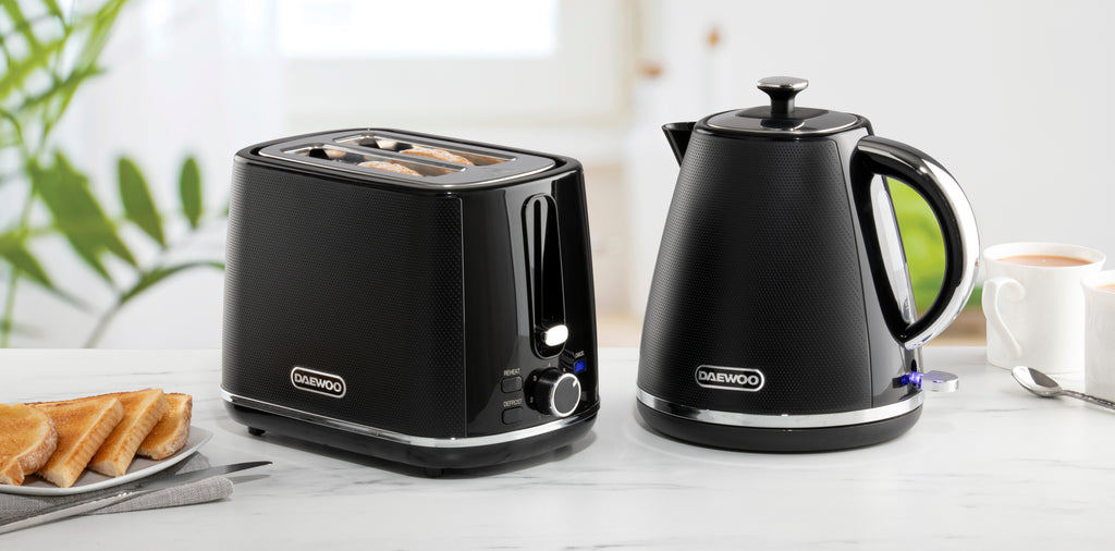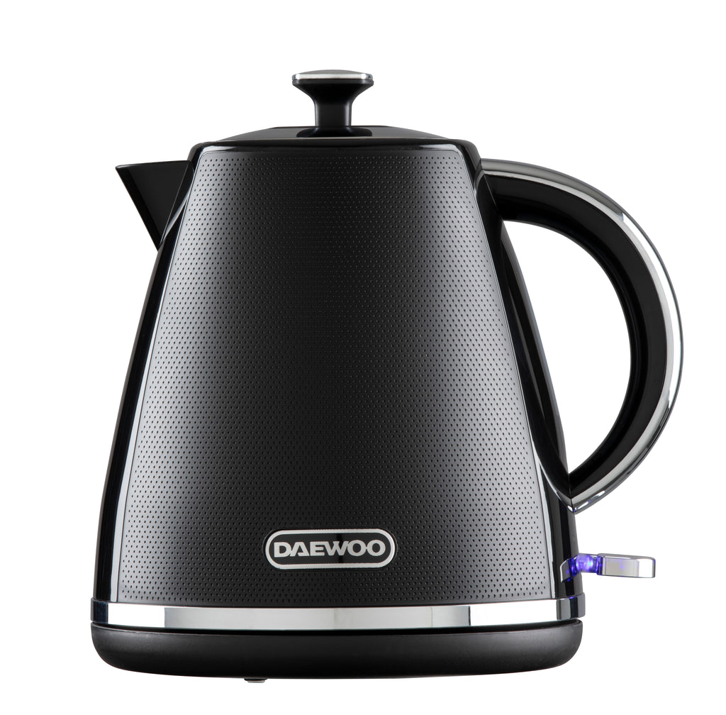 Discover the fusion of style and practicality with the latest offering from Daewoo, the Stirling Collection. This modern kettle is a standout with its distinctive textured surface, bringing a contemporary flair to your kitchen space. Thoughtfully engineered for user-friendliness, it features a versatile 360° swivel base, ideal for both right and left handed users. Equipped with a powerful 3KW element, it rapidly boils water, perfect for the demands of a busy kitchen or for quick meal preparations, and its ample 1.7L capacity can handle large volumes with ease.