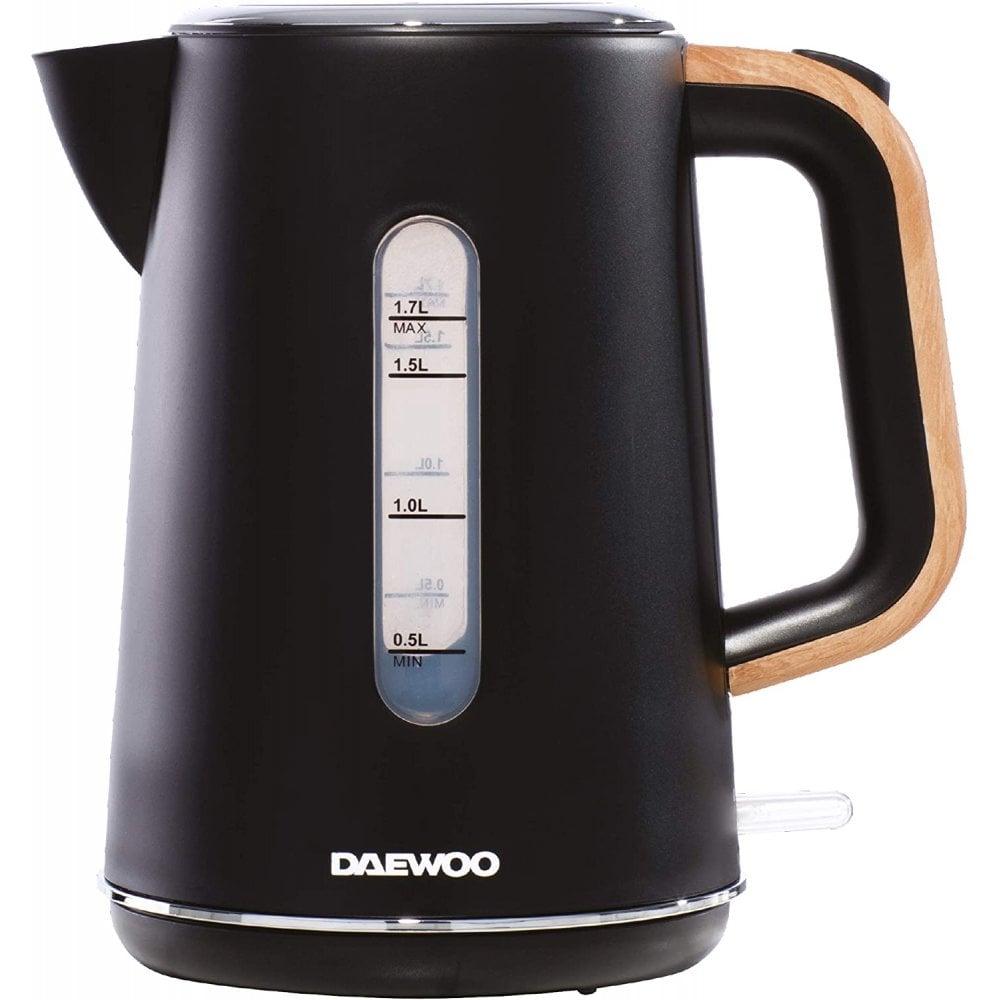 The Daewoo Stockholm Kettle is stylishly designed with a smooth matte finish plastic body and accented with wood effect handle and chrome detailing, adding a touch of class to your kitchen. The Stockholm kettle features a indicator light that lets you know when it is on or off and switches off automatically once the water has reached boiling point. The perfect addition to any contemporary kitchen, pair with the Daewoo Stockholm toaster to complete the look.