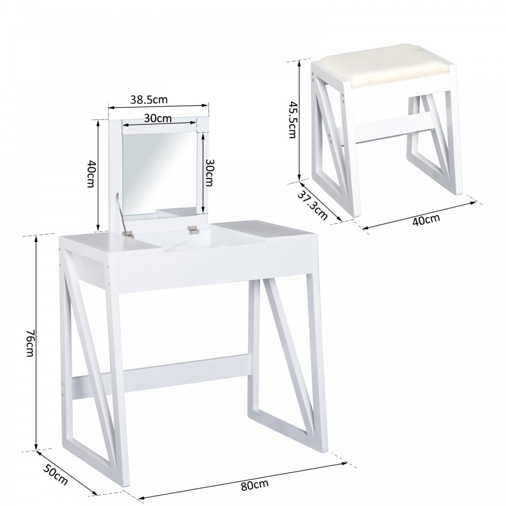 Dressing Table with Cushioned Stool, MDF, Pine-White