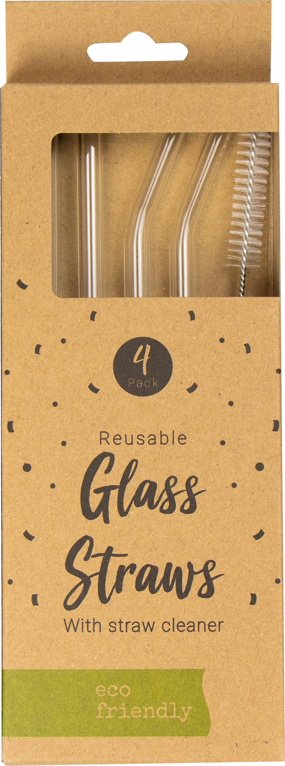 Each pack contains two straight straws and two angled straws and is complete with a cleaning brush.