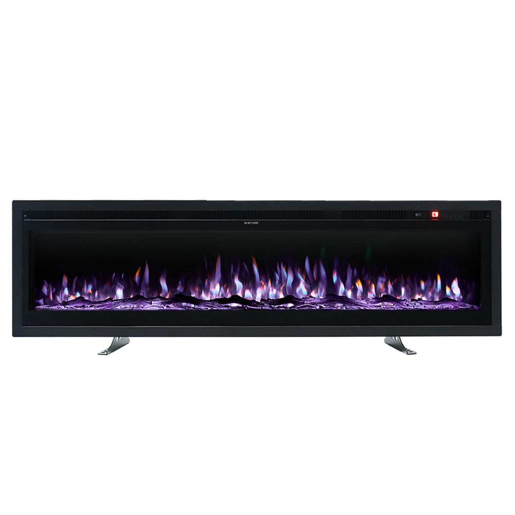 Bring warmth and ambience to your home with this versatile Electric Fireplace. Realistic flickering flames can be admired through a clear tempered glass panel, while faux logs and crystals create a detailed, lifelike fire effect. Designed for flexible installation, it can be recessed into the wall, wall-mounted, or freestanding using the included floor holders, making it perfect for any room layout.