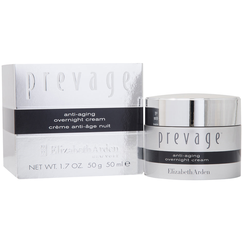 Elizabeth Arden Prevage AntiAging Overnight Cream is formulated with Idebenone technology that helps to protect your skin from freeradicals. This cream is created to fight the visible effects of daytime environmental assaults like lines wrinkles discolourations and sun damage. It leaves your skin rested restored and looking more radiant. It works overnight to smooth and soften your skin to reverse dryness with intense hydration and to enhance skins own natural repair process. It glides on smoothly and absorbs quickly. Works perfectly for all skin types.