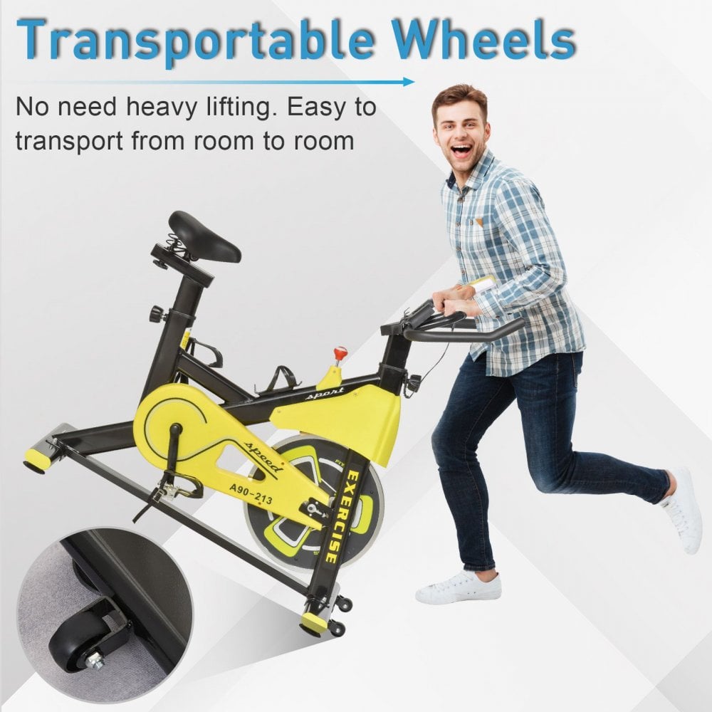 - STURDY STRUCTURE: The indoor cycling bike is made from steel, it is steady and solid, keeping itself balanced when in use. Aluminium pedals are lightweight and support your feet. Fitted with wheels to move easily.