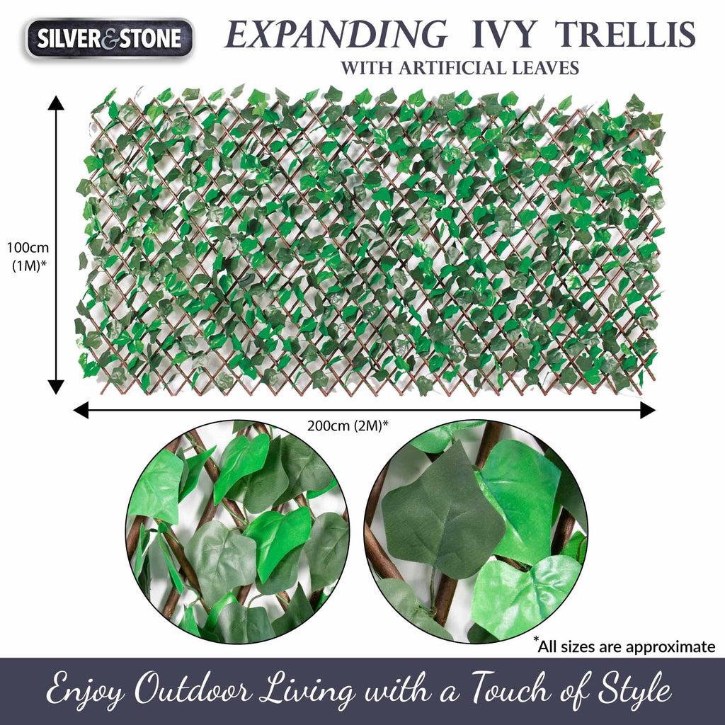 Forget about the hassle of maintaining real ivy, which can damage your walls or fencing. Instead, choose this weather-resistant artificial trellis with plastic white roses that stays beautiful all year round. Measuring at 100 x 200cm, it's the perfect solution to add charm and decoration to any plain or bare garden wall or fence.