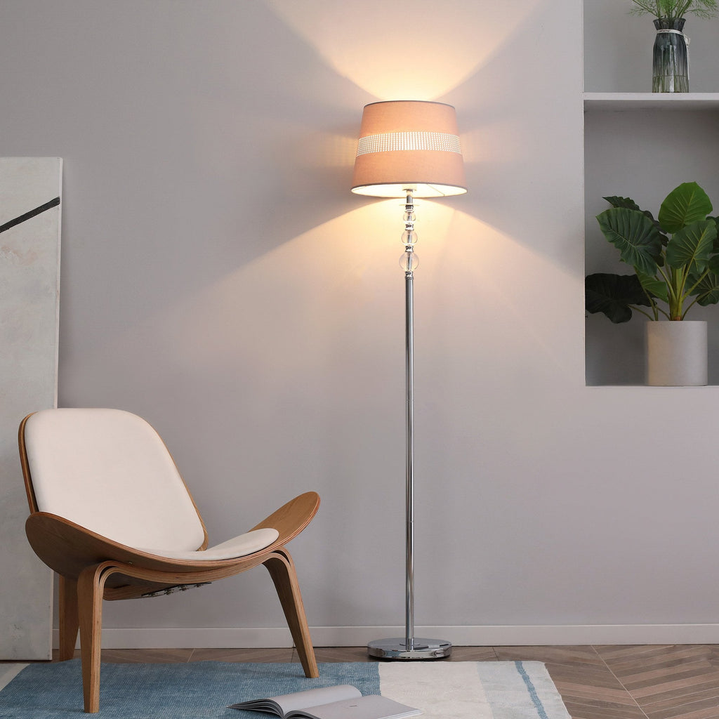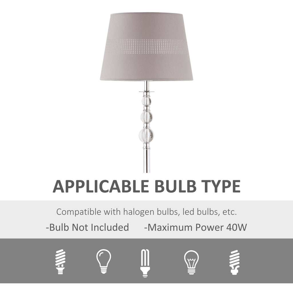 Bring glamour to your bedroom and beyond with this tall floor lamp from HOMCOM. It comes with a cut-out pattern shade, which complements the polished metal frame. The crystallite beads on the top gently catch the light for some sparkle. Foot switch makes the floor lamp for bedroom easy to turn on and off, where the light gently illuminates your area - creating an inviting spot where it stands. E27 bulb base, suitable for both LED and halogen bulbs.