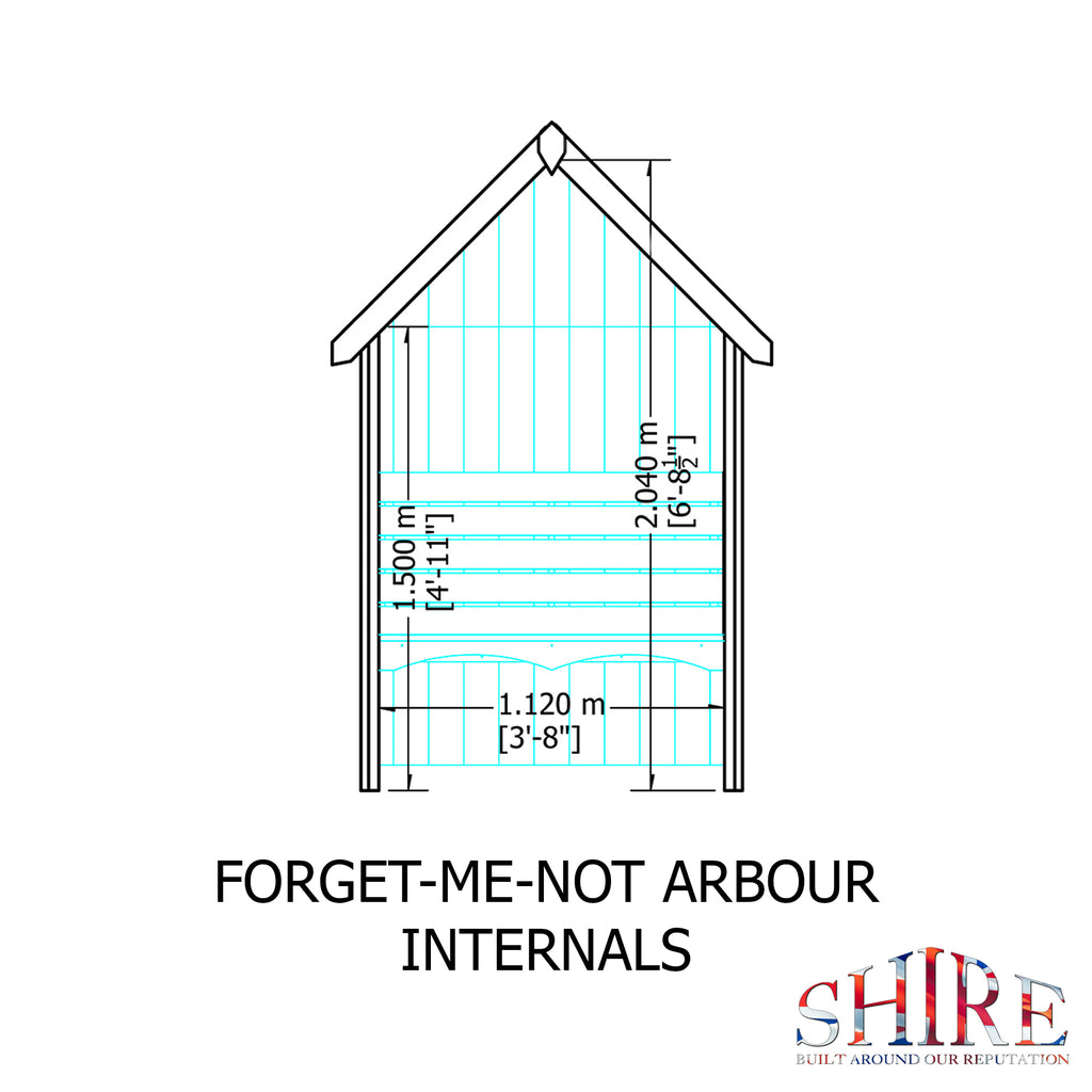 The Forget-Me-Not Arbour is an attractive garden feature with a timber clad, apex roof and integral seating with sloping back to add to the comfort. This arbour is manufactured from high grade, slow grown, FSC approved, northern European pine which has been pressure treated to protect it from rot and insect attack for many years. The roof and walls are 12 mm shiplap T&G and all framing is 34 mm square. Supplied in its natural finish you can apply a wood stain or paint to suit your garden and nurture the wood.