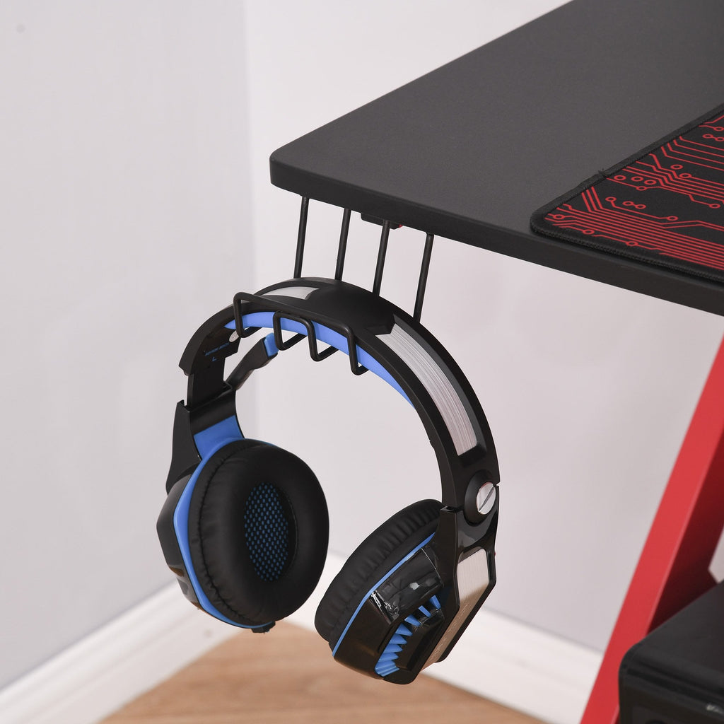 - Features headphone hook, cup holder, speaker holder and game controller rack to keep everything organized