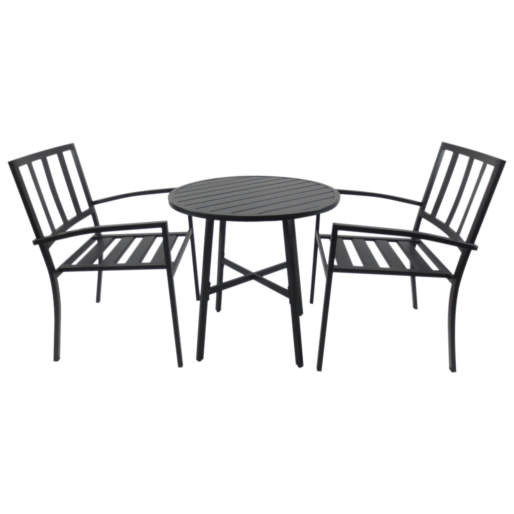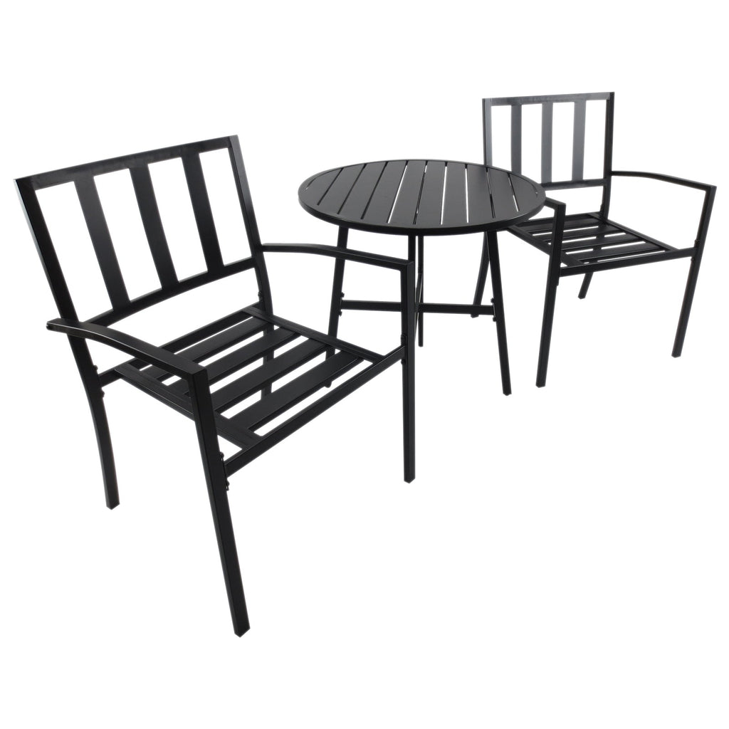 - Custom Label: 84B-242V01. THREE-PIECE SET: Includes two chairs and a matching round table, perfect for dining with someone else outside. Ideal for small and large gardens alike, balconies, patios etc.