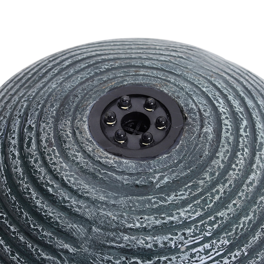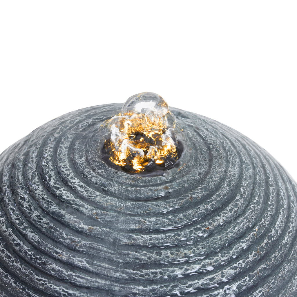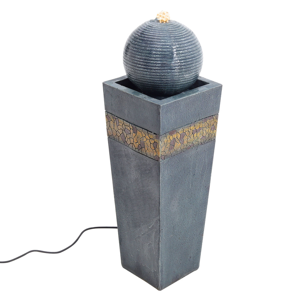 With its sleek trapezoidal base and textured spherical top, this fountain brings a modern, sophisticated touch to any outdoor or indoor setting. The vertical design takes up minimal floor space, while the sculptural sphere adds visual interest and helps to guide the water gently downwards. Crafted from high-quality resin, the fountain is both lightweight and durable. An integrated LED light within the top sphere provides a warm glow after dark, enhancing the atmosphere of your space.