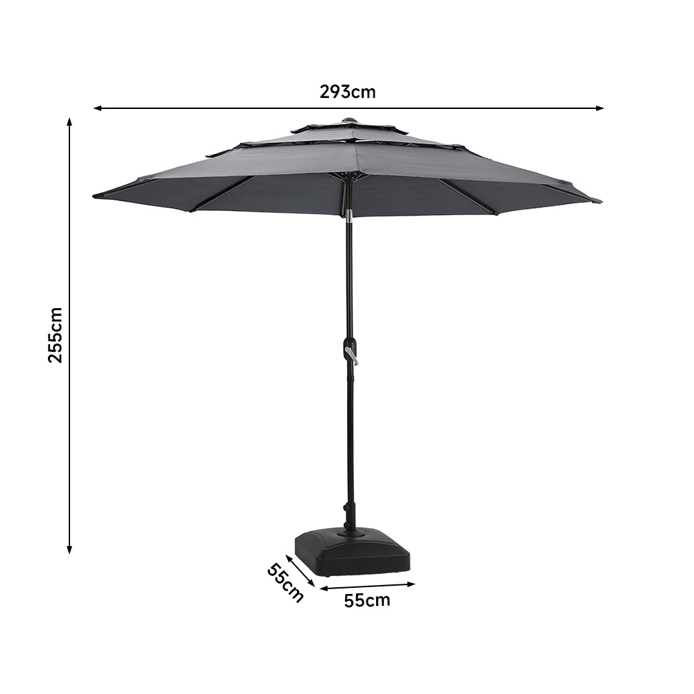 Transform your garden or patio into a relaxing retreat with this 3-Tier Parasol ? a must-have for both unwinding and outdoor tasks. Built with a layered design and hard-wearing, weather-resistant fabric, it offers dependable shade whether the sun is blazing or light rain falls. Thanks to the simple crank handle and tilt function, you can easily adjust the angle and height to stay sheltered and comfortable throughout the day.