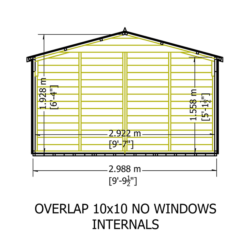 Part of our Garden Value range of overlap sheds. Double doors provide easy access to the entire space, with hasp & staple ready for your own padlock.. This handy shed is manufactured from high grade, slow grown, FSC approved, European pine cladding boards over 34mm square framing with OSB roof and floor. No windows for added security. Dipped base coat preservative ready for you to top coat.