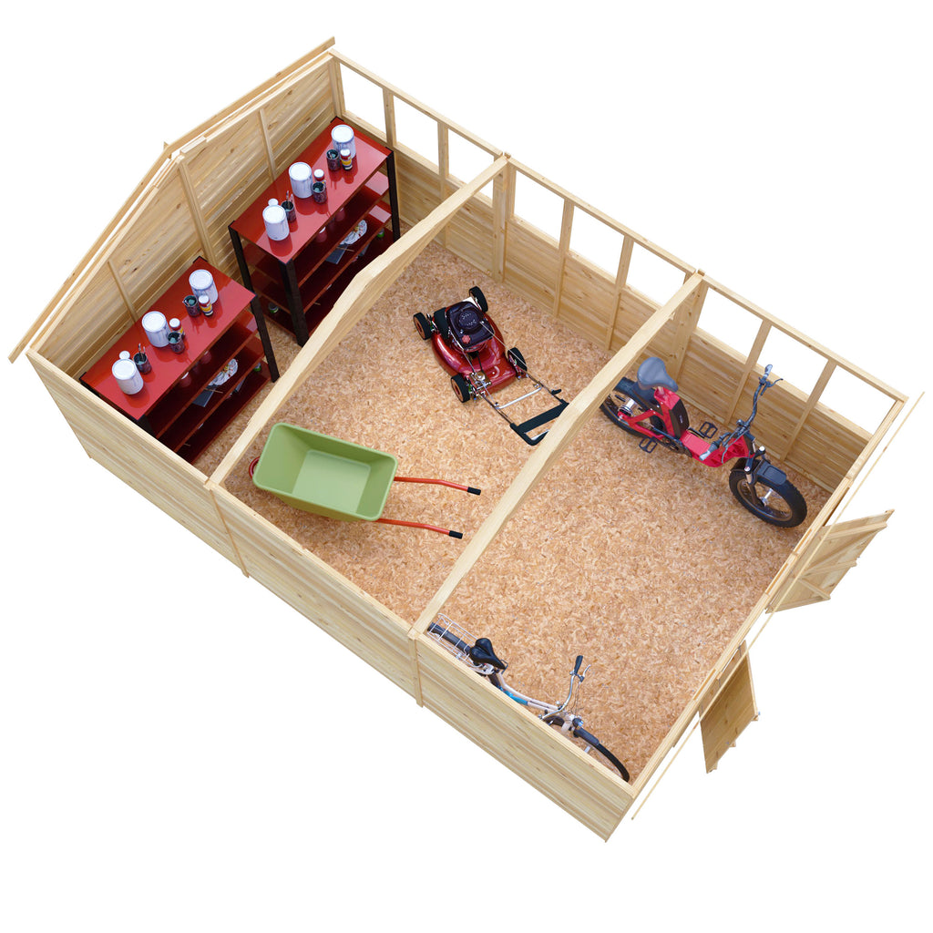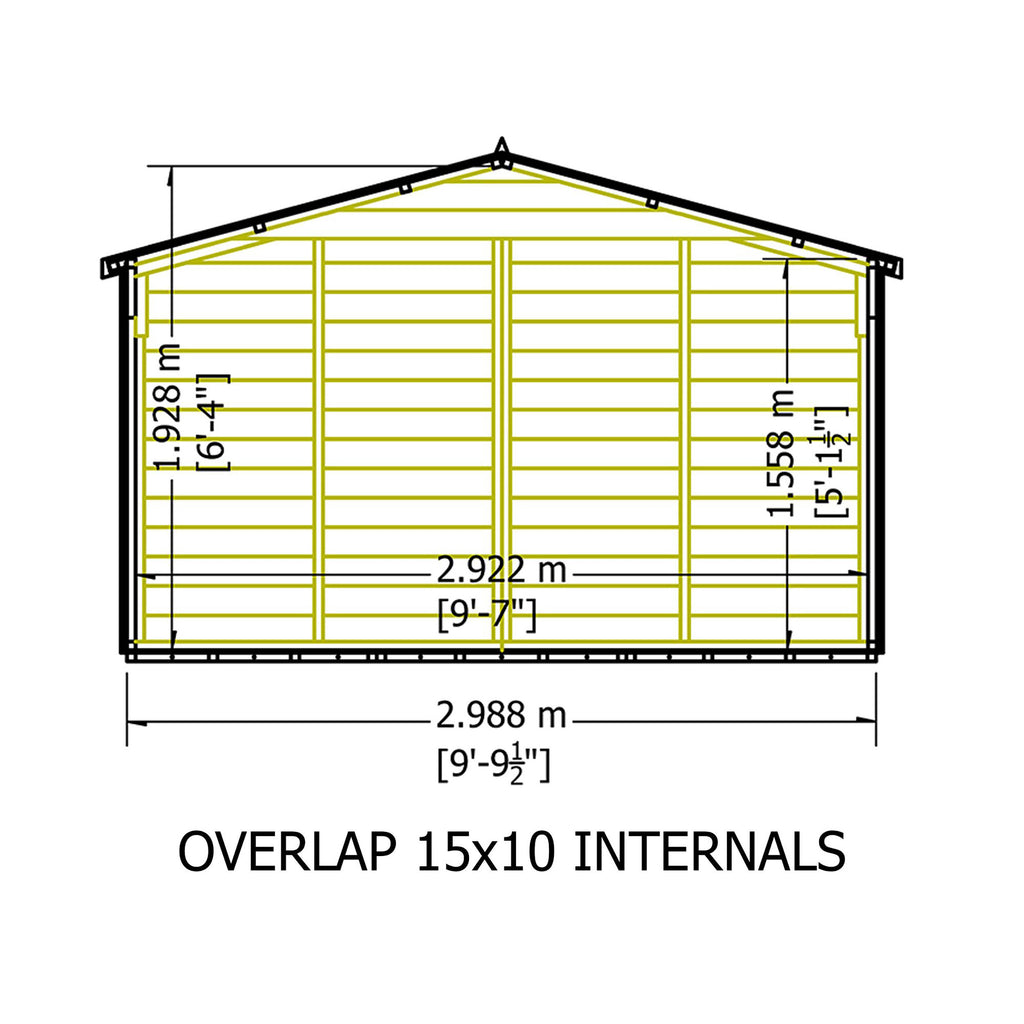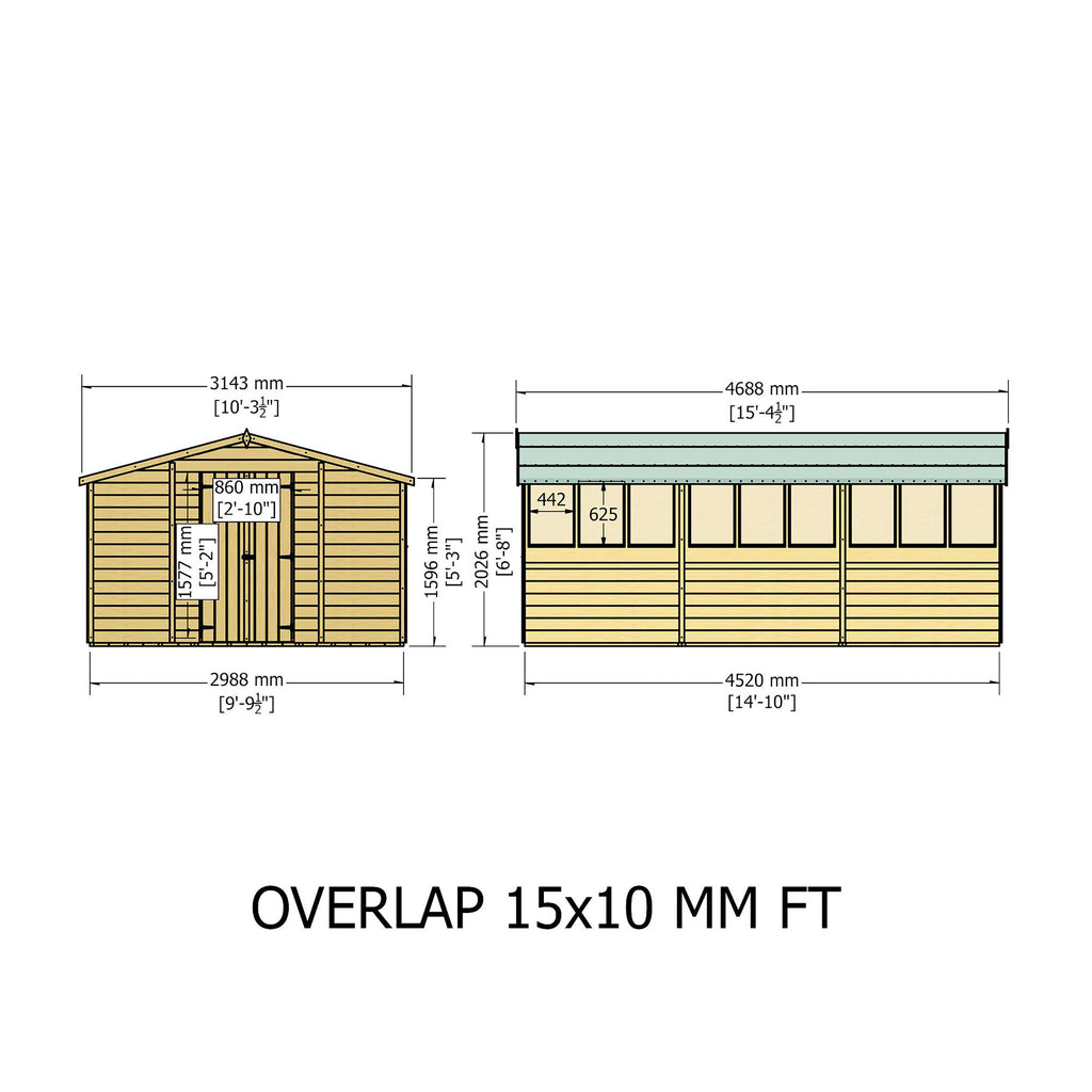 Part of our Garden Value range of overlap sheds. Double doors provide easy access to the entire space, with hasp & staple ready for your own padlock.. This handy shed is manufactured from high grade, slow grown, FSC approved, European pine cladding boards over 34mm square framing with OSB roof and floor. With nine fixed, acrylic windows that can go either side. Dipped base coat preservative ready for you to top coat.