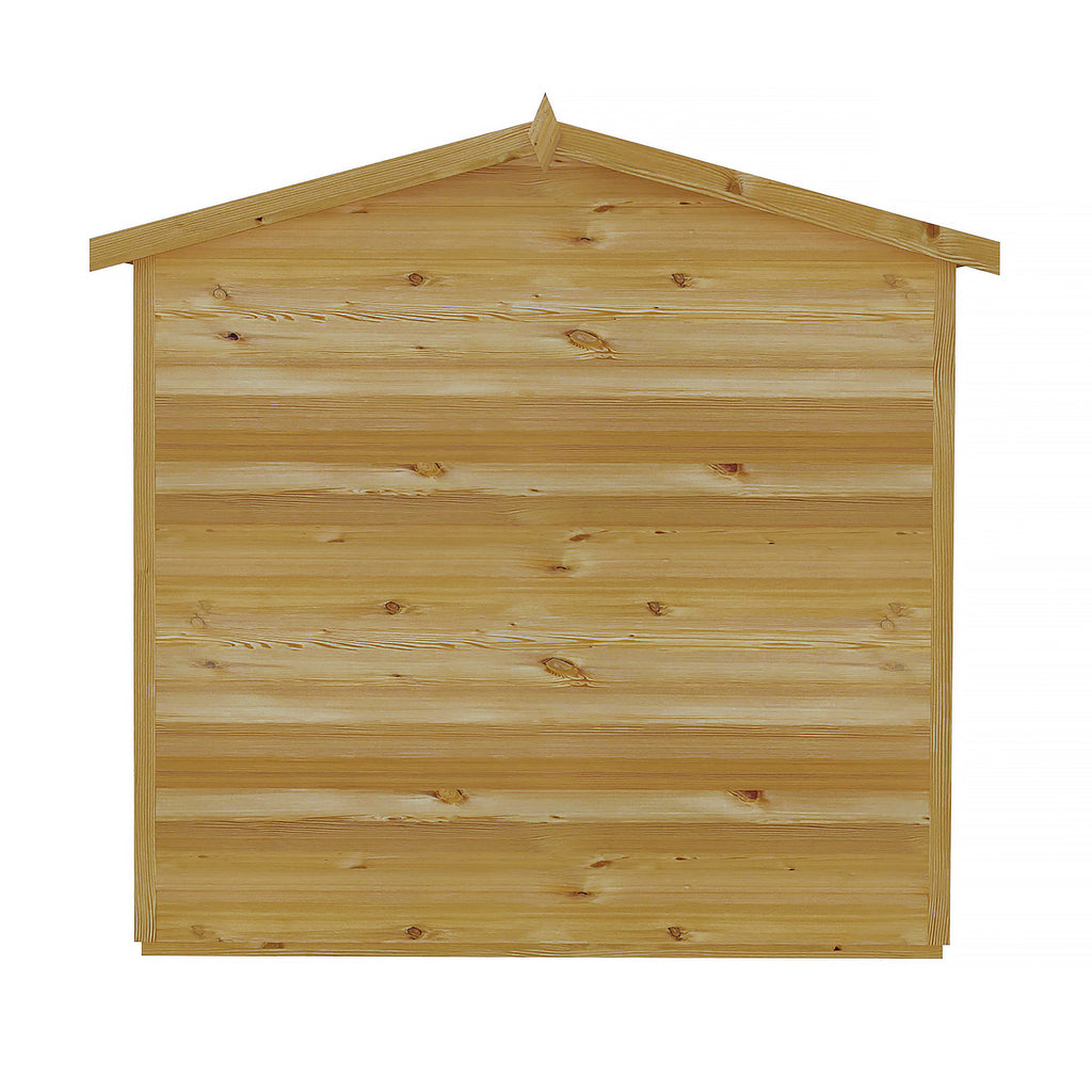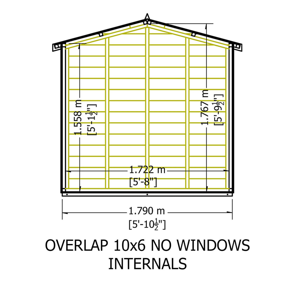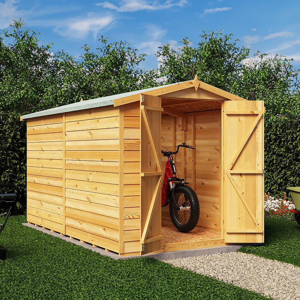Part of our Garden Value range of overlap sheds. Double doors provide easy access to the entire space, with hasp & staple ready for your own padlock.. This handy shed is manufactured from high grade, slow grown, FSC approved, European pine cladding boards over 34mm square framing with OSB roof and floor. No windows for added security. No windows in this model. Dipped base coat preservative ready for you to top coat.