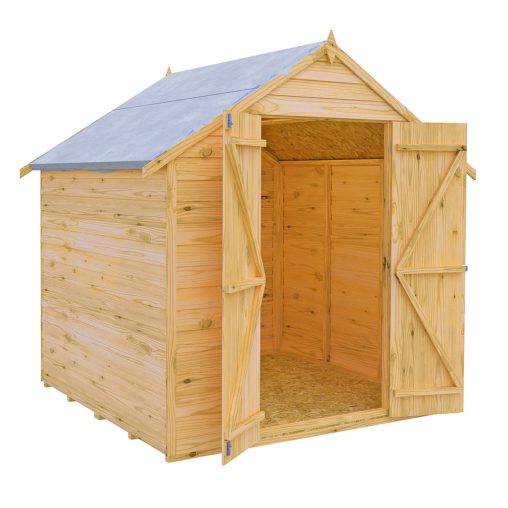 Part of our Garden Value range of overlap sheds. Double doors provide easy access to the entire space with hasp & staple ready for your own padlock.. This compact shed is manufactured from high grade, slow grown, FSC approved, European pine overlap cladding boards over 34mm square framing with OSB roof and floor. No windows in this model. Dipped base coat preservative ready for you to top coat.