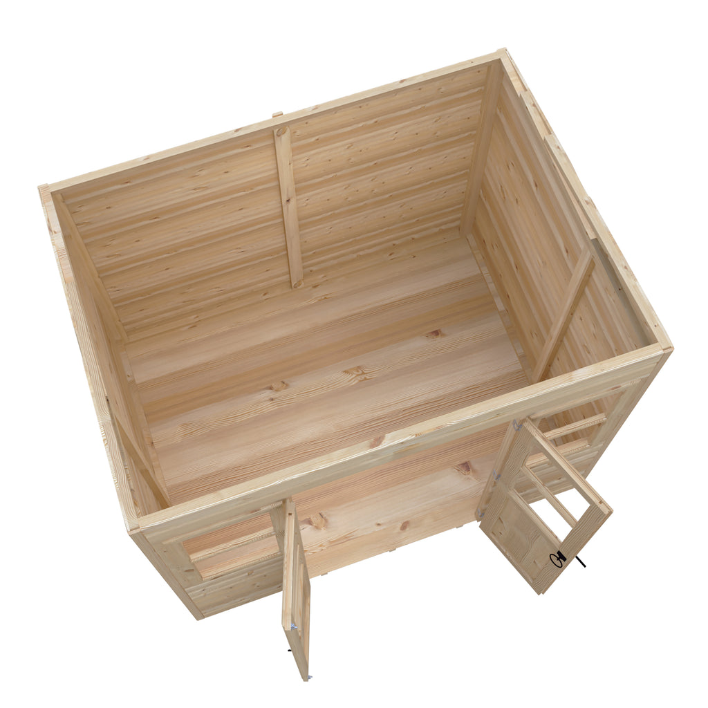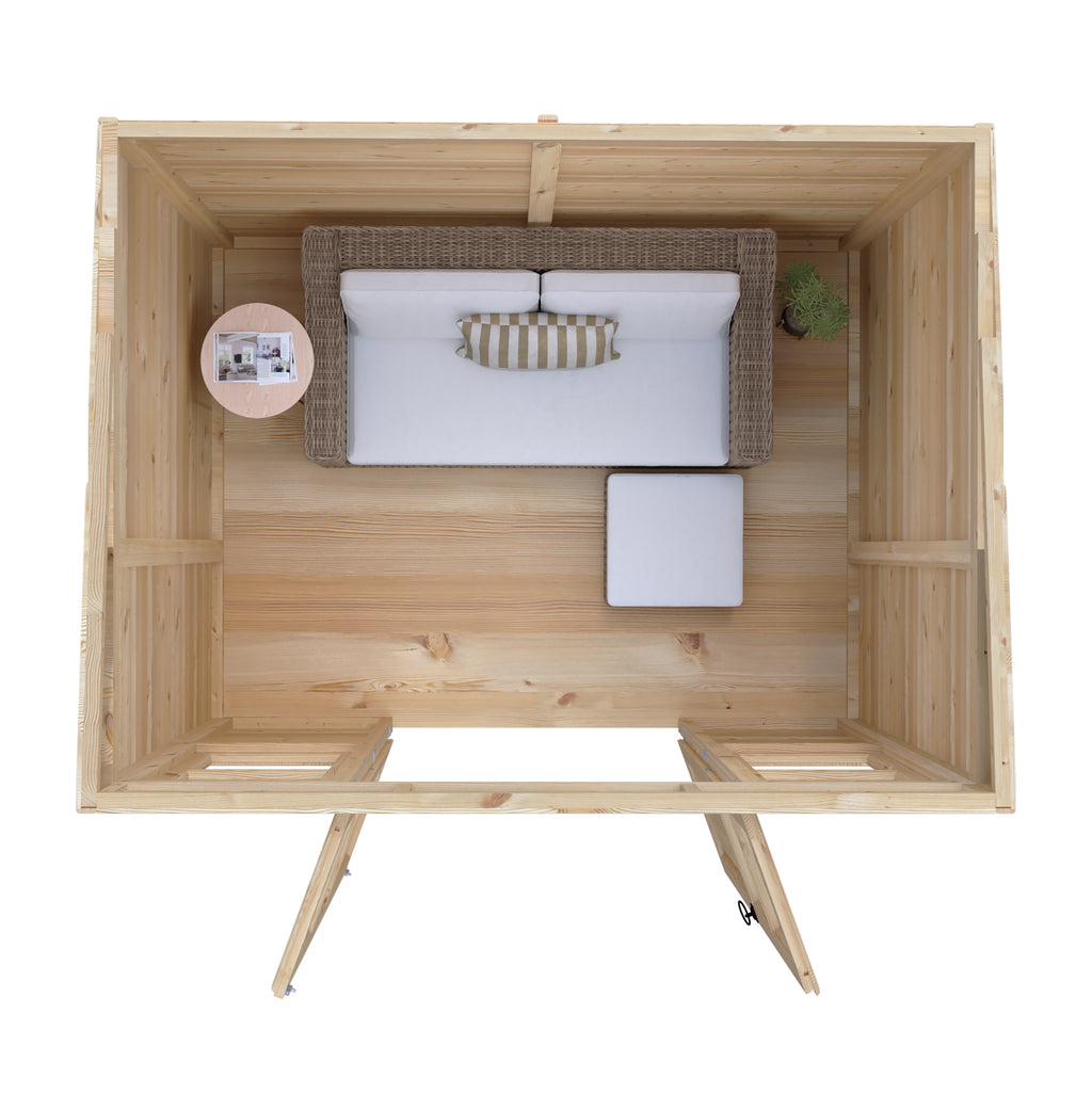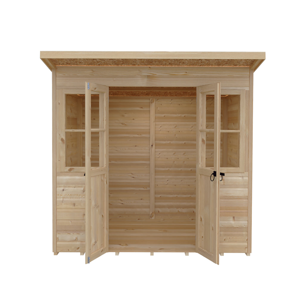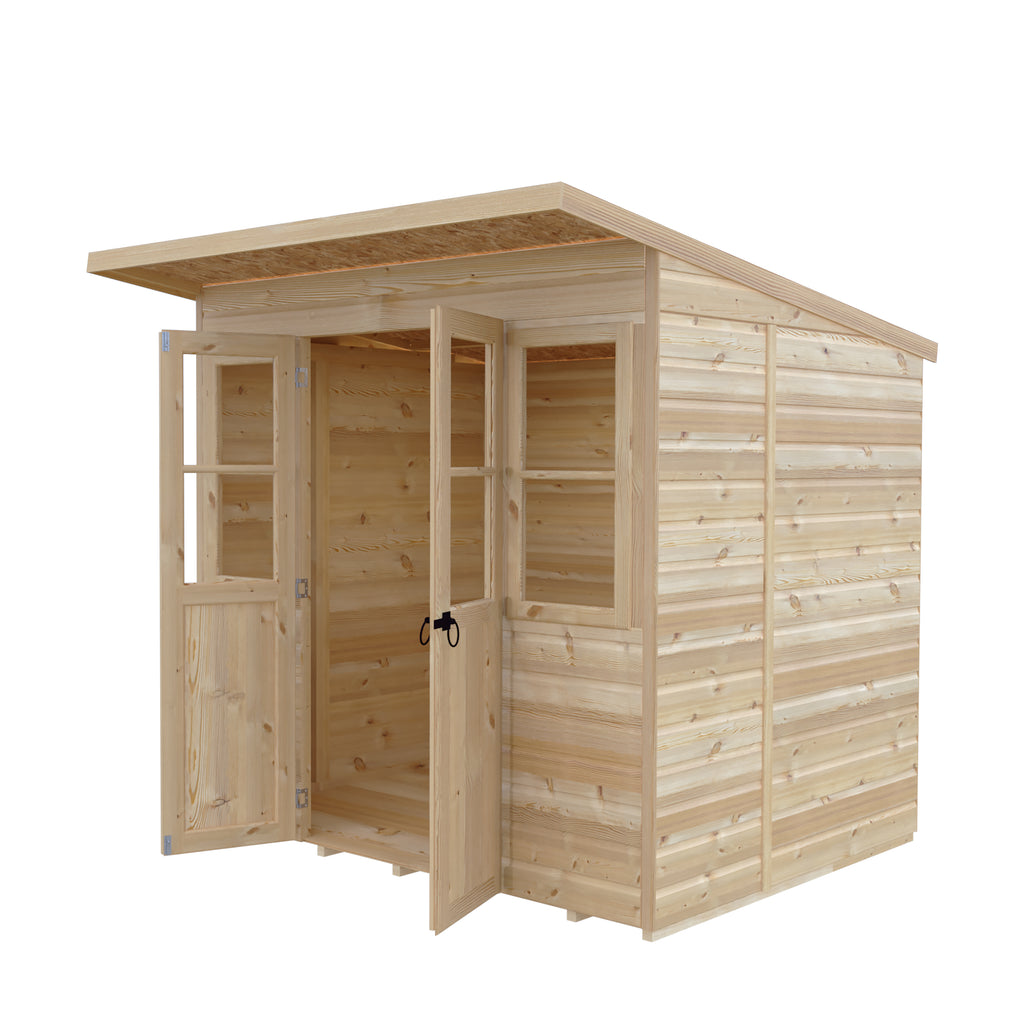 A great value Summerhouse designed to give years of service, the Haddon Pent has a multitude of uses. The practical, joinery quality, glass glazed double doors feature a traditional gate latch. There are two fixed windows. It is constructed on sturdy 34mm square framing and clad with planed shiplap tongue and groove boards made only from the highest grade, FSC approved, slow grown northern European pine with OSB roof and T&G floor. Dipped base coat preservative ready for you to top coat.
