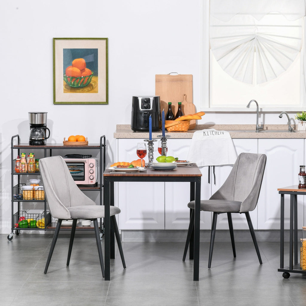 Introduce a touch of sophistication to dining times, thanks to these two dining chairs from . The seats are cushioned for comfort, wrapped in velvet-feel fabric which is soft on the skin. The curved back supports your body when you lean back, with the armless design giving freedom of movement.. Both are finished with steel legs to keep you steady when in use.