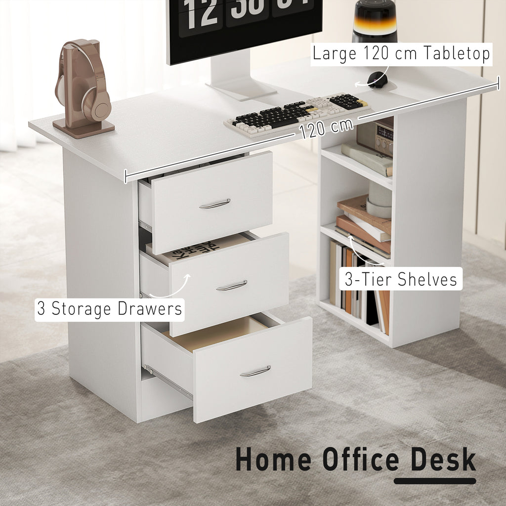 HOMCOM 120cm Computer Desk PC Table Workstation W/ 3 Shelf & Drawers White