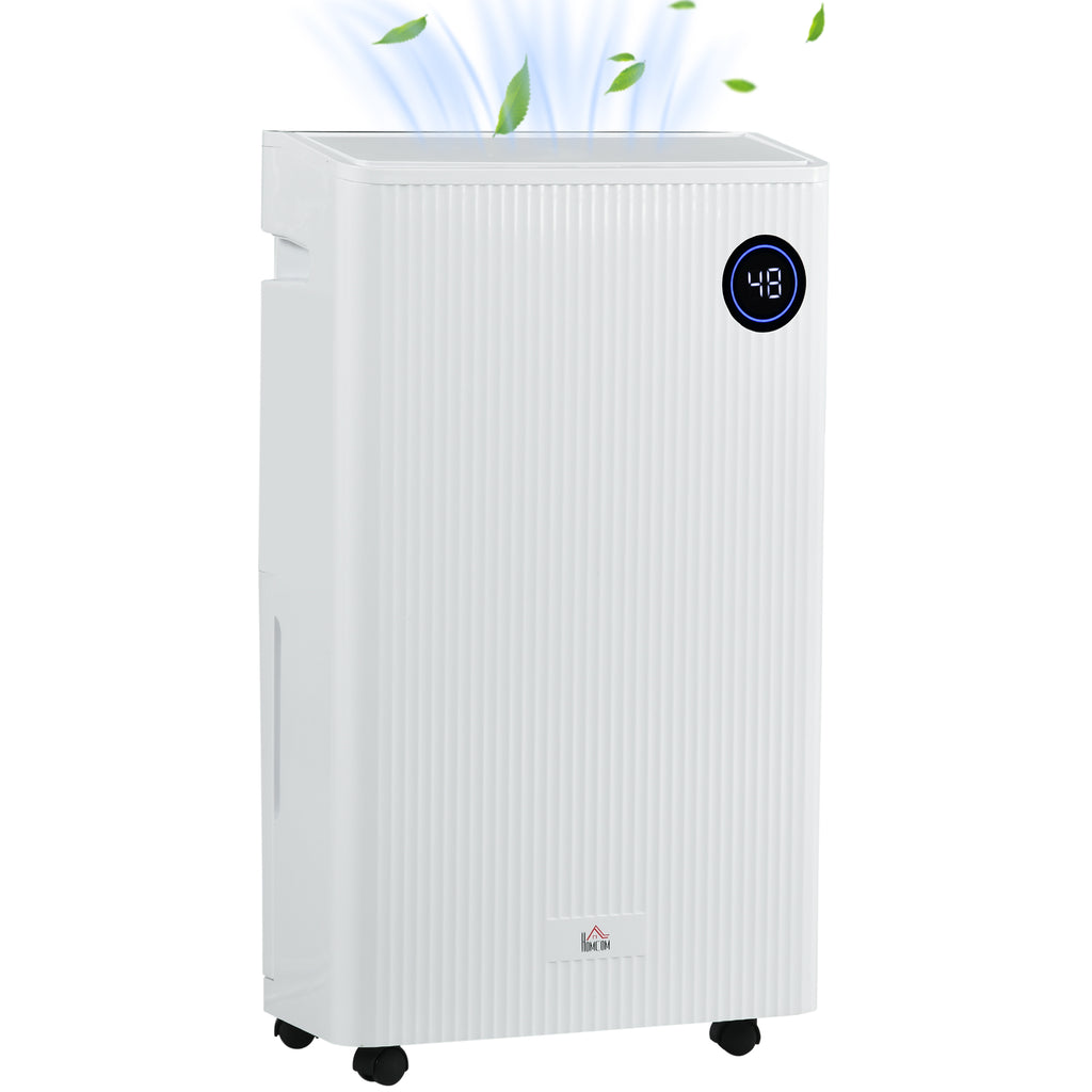 This dehumidifier and air purifier, from HOMCOM, is made to keep air fresh and dry. It removes moisture, protects your walls, furniture, appliances and more from damp. Two speeds and five modes to set to an option which works best for you. The LED screen allows you to control, whilst displaying the humidity and current setting. A safe piece with the light warning and tank cut-off, also with child lock. The HEPA, activated and pre-filter, with air ionising keeps the air clean. • Two speeds and five modes: dehumidification/continuous dehumidification/dryer/fan/sleep