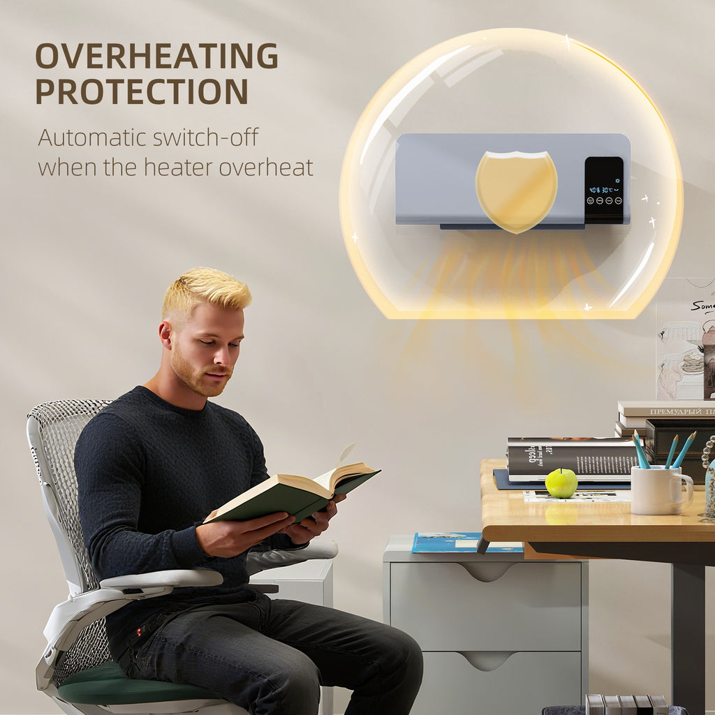 Heating, instantly from above with this HOMCOM wall-mounted heater. Set between 18-45°C and flick to either low or high: it's suitable for use throughout the year and during different times of the day. The fan works in an oscillating movement - this covers a larger area to heat up your home quicker. With an LED panel and remote, this ceramic heater can be changed on the unit or from far away. Complete with a handy 12-hour timer.
