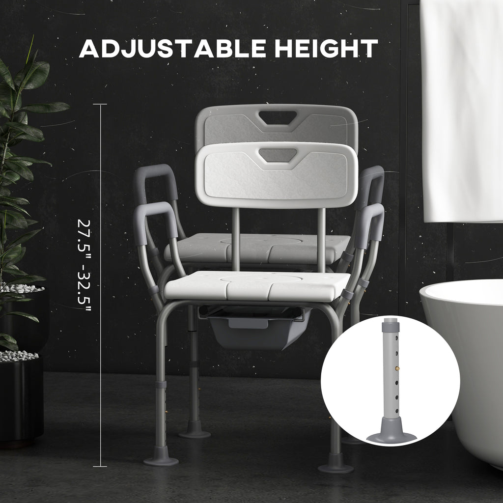 Your versatile companion for the bathroom and bedroom - this HOMCOM shower chair is a great assistant. Use it as an over-toilet chair, bath seat or commode. The aluminium frame is strong, with a wide seat and armrests for support. Adjust the height between 70-82.5cm to find a level most comfortable for you. The commode design means it comes with a removable under-seat tray, ensuring easy cleaning.