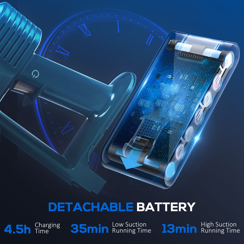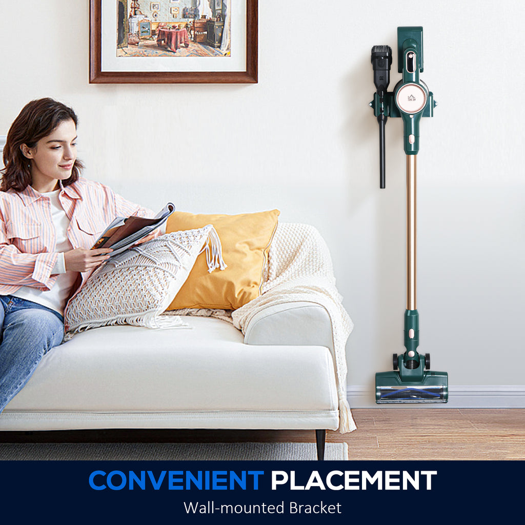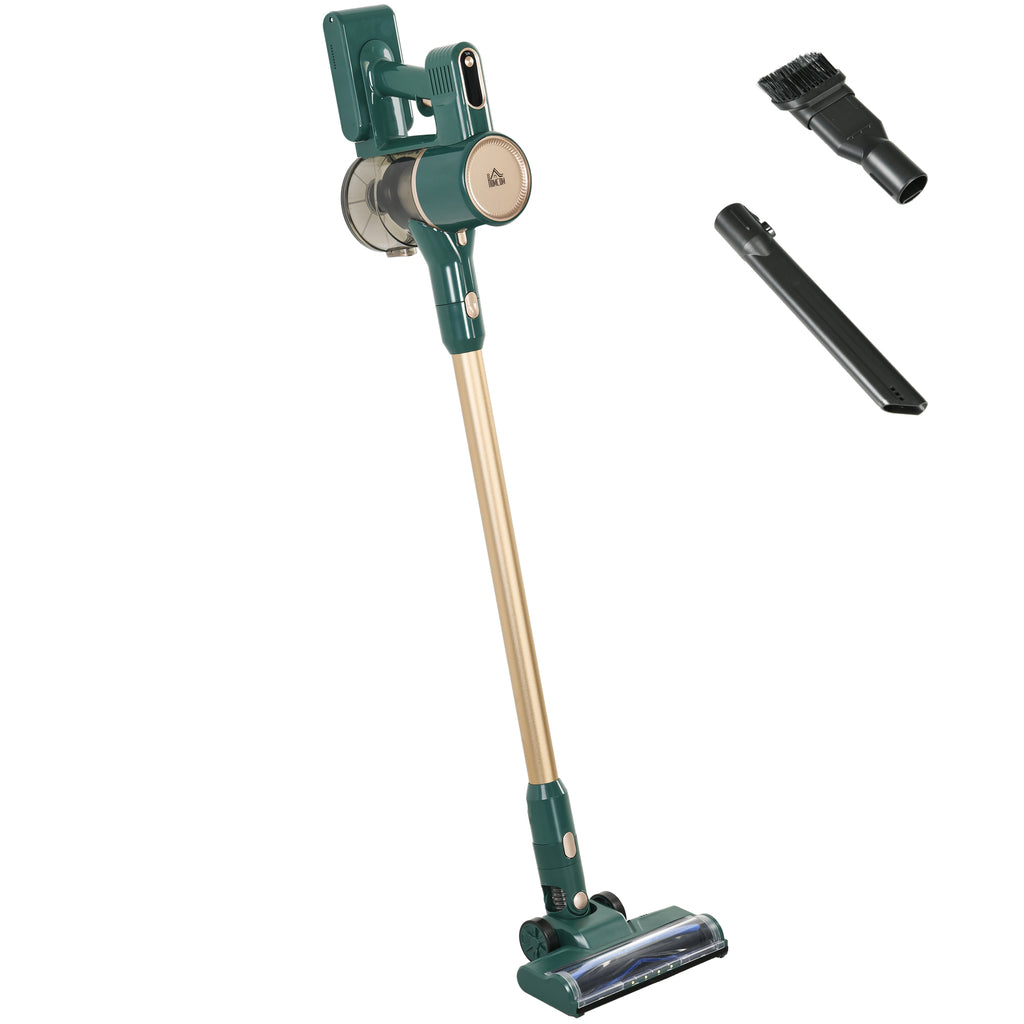 Experience the cleaning power with HOMCOM cordless vacuum cleaner. Equipped with a brushless motor, it effortlessly sucks up dirt and debris, leaving your floors spotless. With its lightweight design and an all-round adjustable main body angle (60°), you can easily maneuver around your home, reaching every nook and cranny. Its versatile attachments make it suit for cleaning carpets, hard floors and hard-to-reach areas. Take charge of your cleaning routine with the cordless vacuum cleaner.