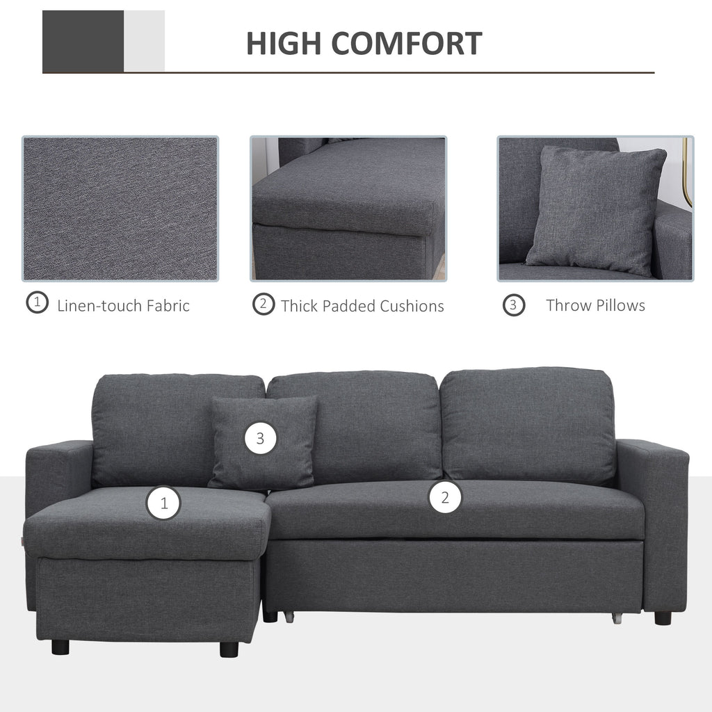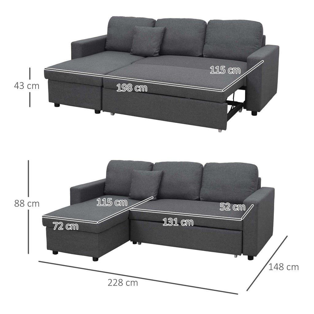 When unexpected guests arrive, or if a gathering continues past midnight, sofa beds come in handy. On the sofa, you can relax with the family, and when it's time to go to bed, you can pull out the leg and give guests a good night's sleep. This corner sofa bed with hidden storage is also a space-saving option for smaller homes, it provides all the comfort of a sofa and the convenience of a cozy bed. Sit back and relax in this sofa bed from HOMCOM.