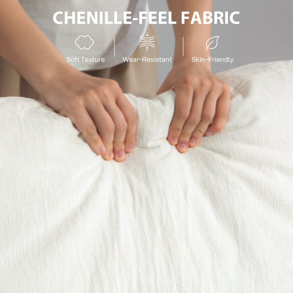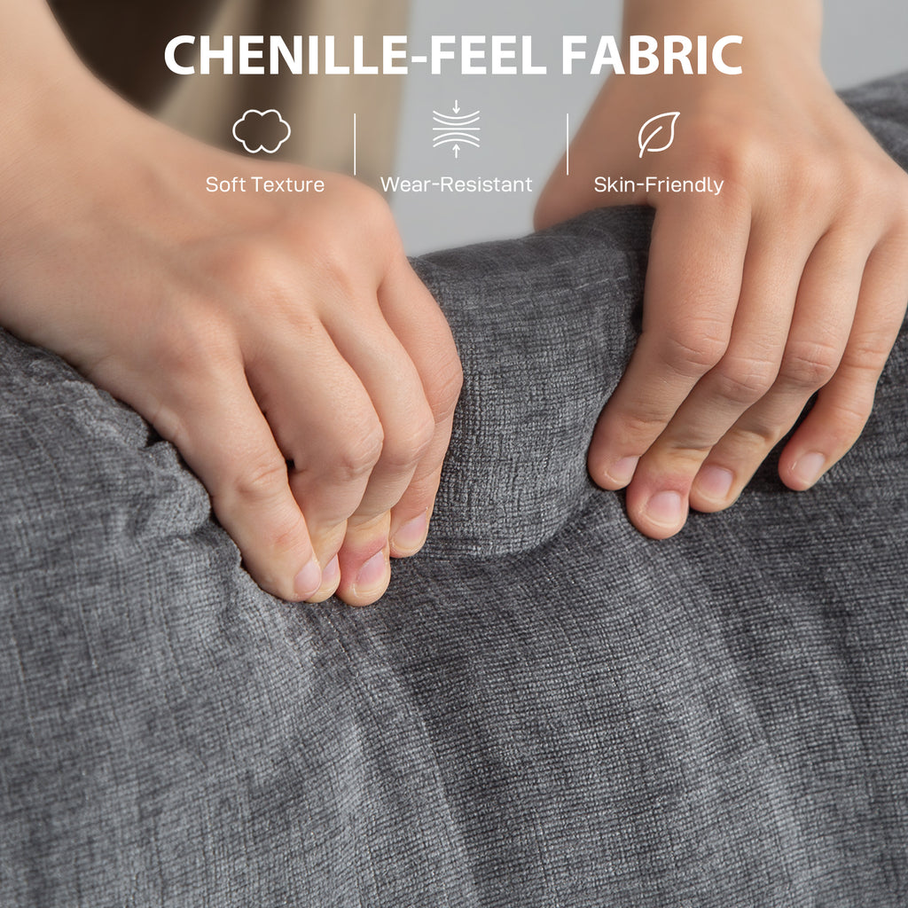 - Chenille-feel fabric upholstery offers a luxurious touch;