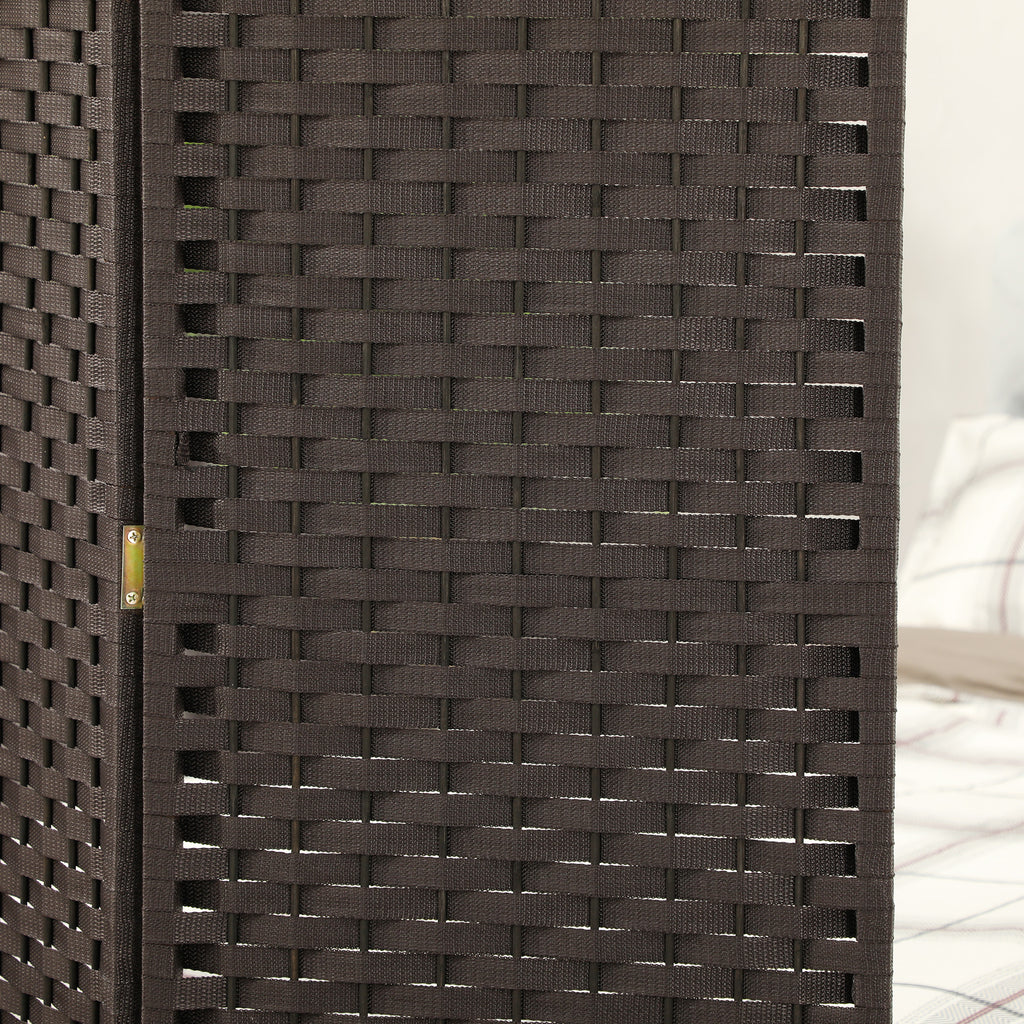 Transform your living space with the HOMCOM folding room divider. Crafted from polypropylene, it offers impressive privacy and robust construction, surpassing traditional paper fibre alternatives. The four-panel folding design features 9 metal hinges, blending functionality with style. The pine wood frame and elegant arched design add a touch of sophistication. This folding screen is a versatile solution for adding privacy or partitioning spaces while maintaining a refined look in your home.
