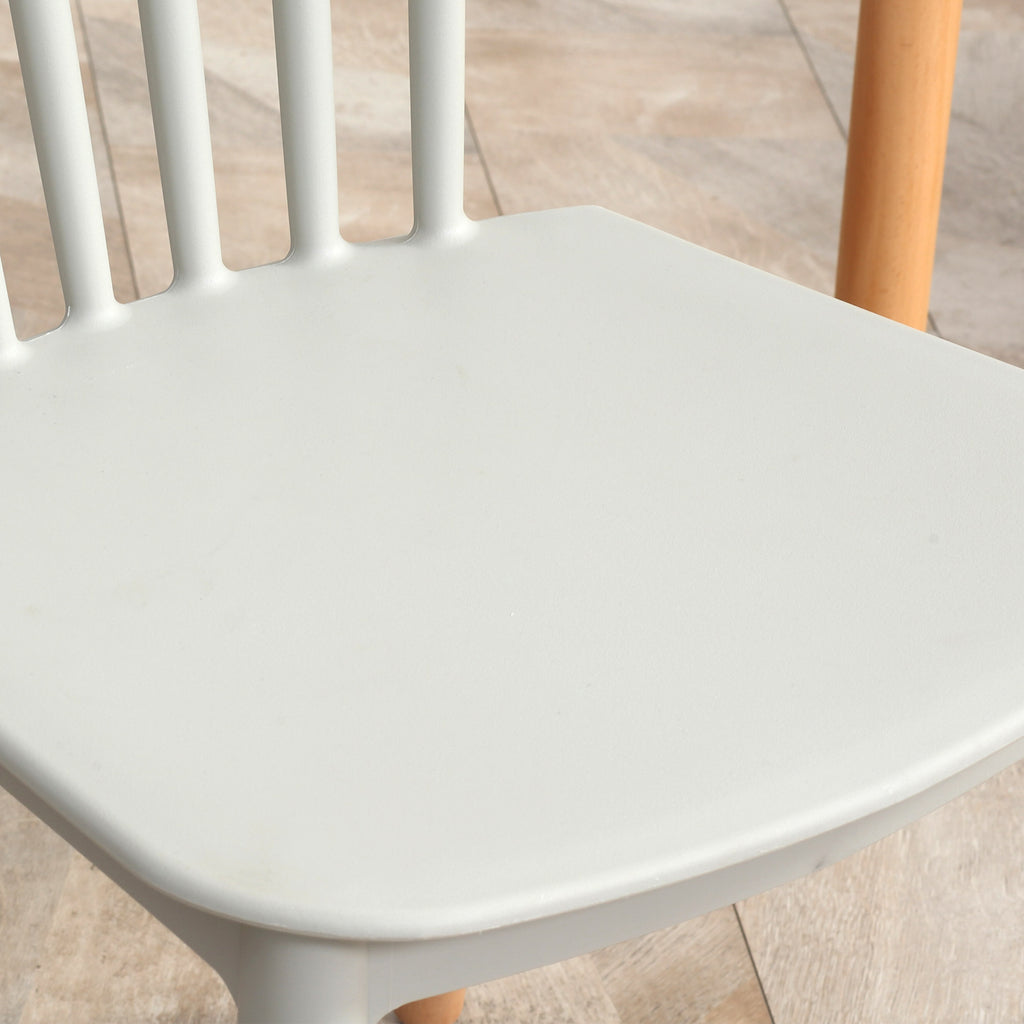 Gather round in simple, Skandi style. This HOMCOM five-piece dining table set comes with white-top seats and a table, with natural-finish wooden legs: an on-trend and stylish design. Set comes with a dining table and four matching chairs - brings you and company together. The armless design of the chairs gives you plenty of room. The wooden legs keep you supported. Complete with handy adjustable feet.