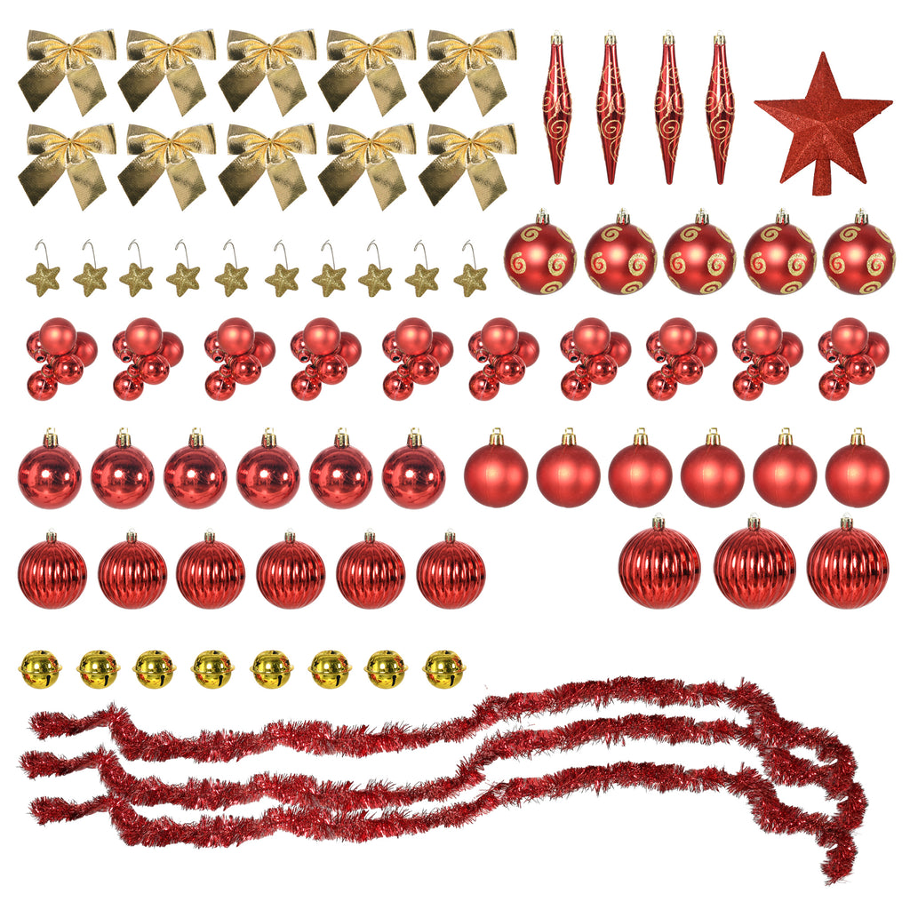 This HOMCOM artificial Christmas tree goes the extra mile in festiveness. Adorned with gold tone bows, red tinsel, red balls and stars, this tree glistens with beauty. It also comes with warm white coloured LED lights so you have everything you need