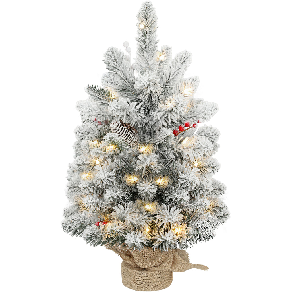 HOMCOM 60 cm Prelit Small Christmas Tree, Snow Flocked Tabletop Xmas Tree