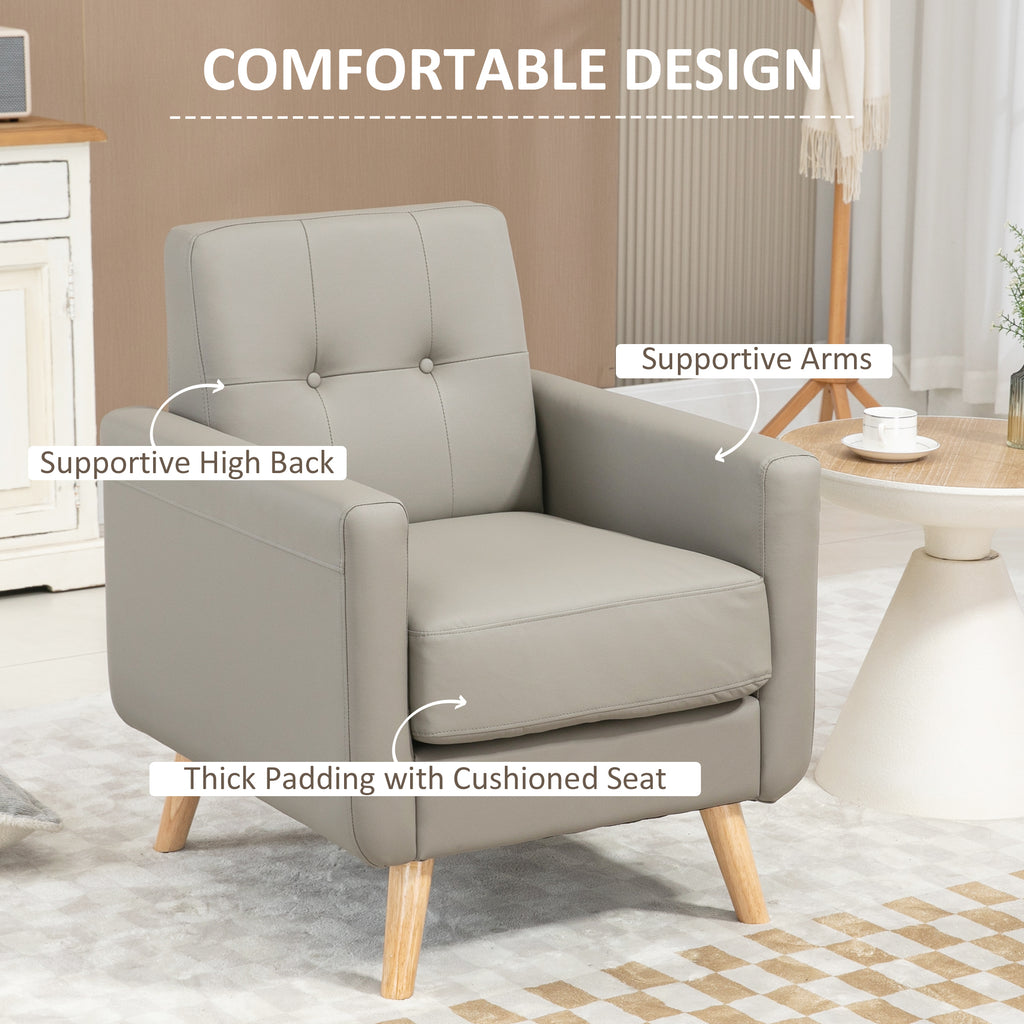 HOMCOM Armchair for Living Room, PU Leather Accent Chair with Footstool, Sofa Chair with Tufted Back for Bedroom, Home Office, Grey