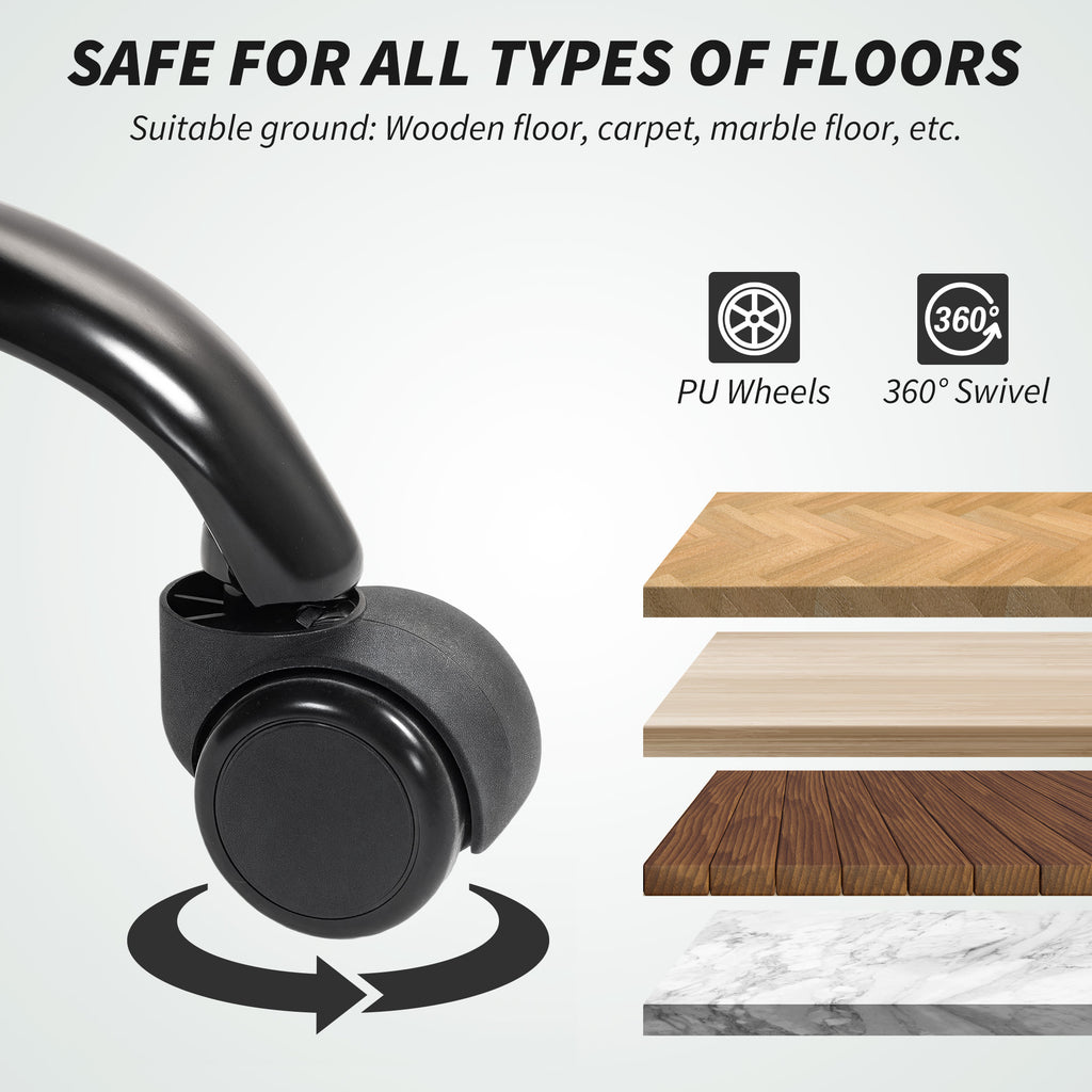 - Five wheels to move chair around easily, quietly and floor-friendly both seated and empty;