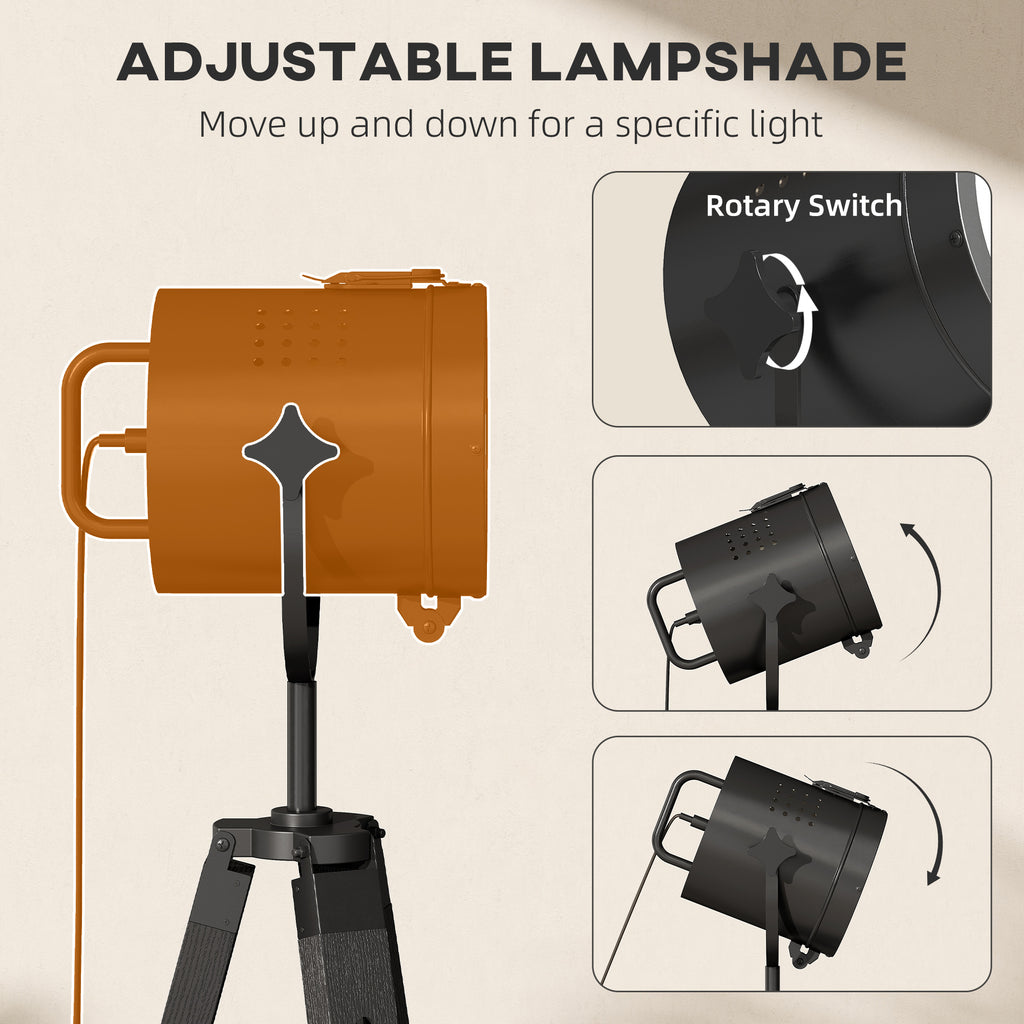 This HOMCOM industrial floor standing lamp pairs solid pine wood legs with a vintage searchlight-style shade for a bold, stylish look. The foldable tripod base offers easy storage and transport. With adjustable height and lampshade, it lets you direct light exactly where neededâ??great for bedrooms, living rooms, studies and more.