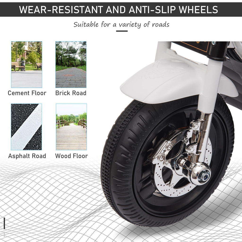 Let them ride around in retro style with this electric toy bike from HOMCOM. Made for ages 18-36 month, it won't go faster than 3km/h - meaning it can zip along without going too fast. Realistic in design, it is made with working headlights and tail lights and also plays a horn sound and music. The back box caters for storage on-the-go. With a large seat, foot well and handlebars, your child will be seated comfortably. A great way to get them outdoors and playing with friends.
