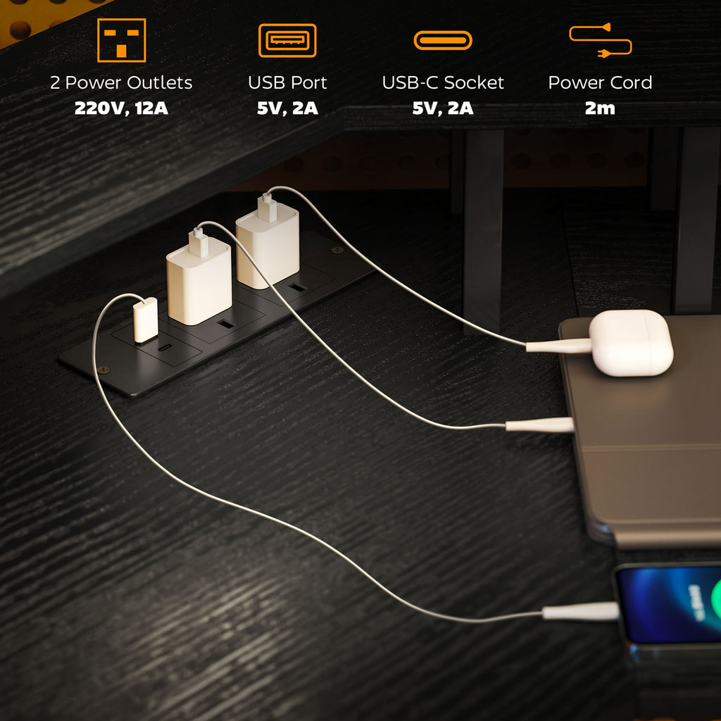 • Two power outlets, a USB port and a USB-C socket for easy, convenient charging
