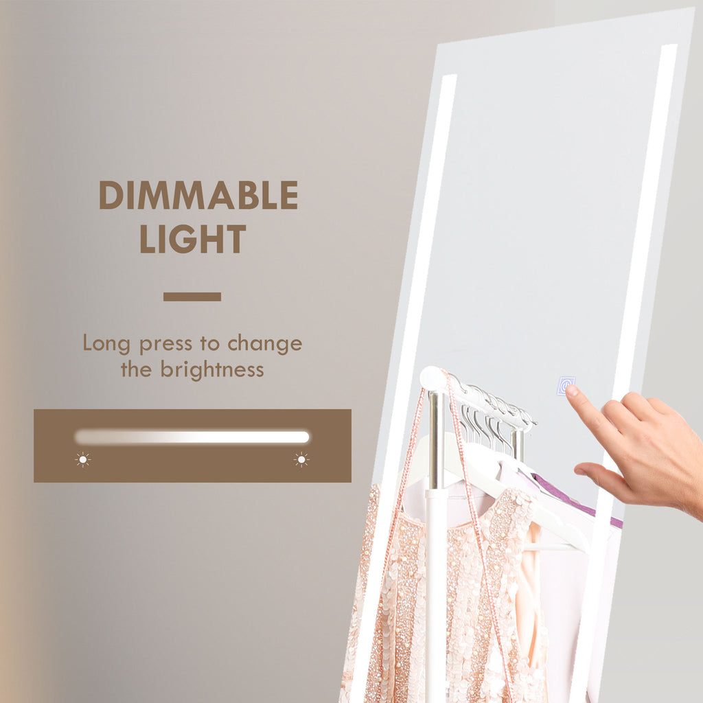 A classic homeware piece, with a handy extra: this HOMCOM full length mirror. With two long light strips on each side, it lights up the inner mirror beautifully, through day and night. The light switches between warm white, natural and positive white colour, with adjustable brightness: change with the touch control. Features a handy memory function to keep your settings every time. Fitted with a back leg to have freestanding, or fix on the wall with bracket and fixing accessories included.