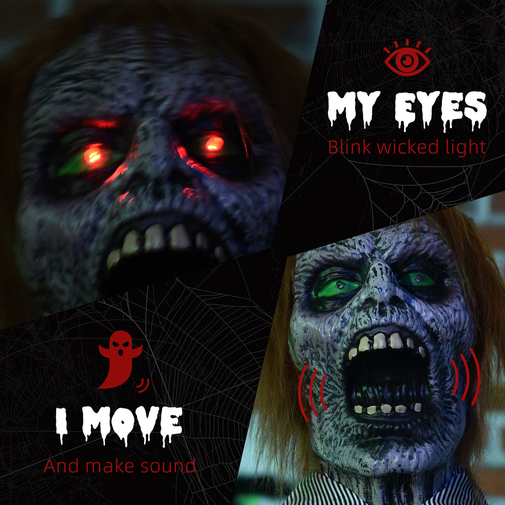 - Activates by touch or loud noises. The good choice to scare trick-or-treaters;