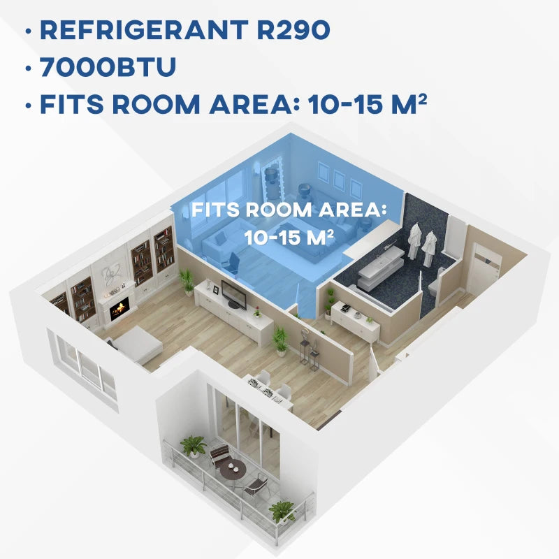 - 7000 BTU to deliver instant cooling for home and office. Fits room area: 10-15m²