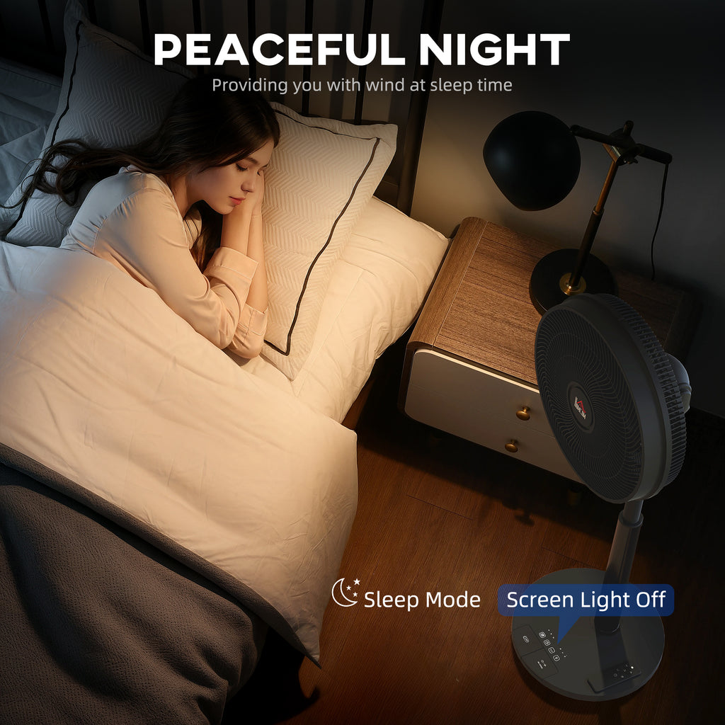 Discover the quiet comfort of the HOMCOM standing fan, featuring a DC motor that ensures energy-efficient, whisper-soft airflow. With three modes including a sleep setting and 12 speeds all easily managed by remote, enjoy a tailored breeze anytime. Plus, oscillating function, adjustable tilt head and adjustable height make this stand up fan a breeze to cool any corner of your room.
