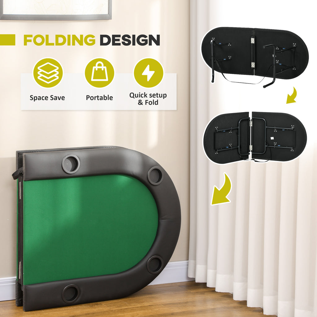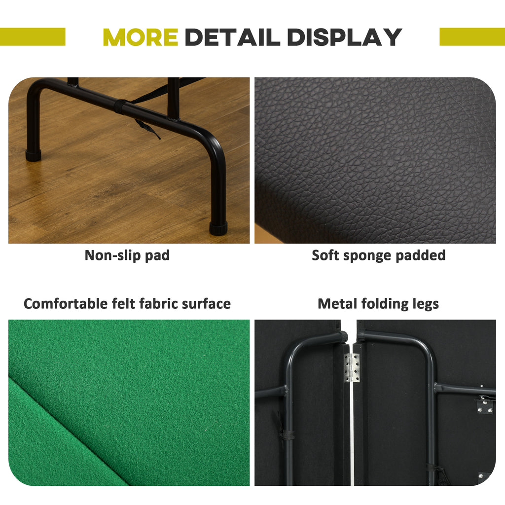 Challenge friends to exciting poker tournaments with HOMCOM professional poker table. Its quality feel will have you and your buddies playing long into the night. With an extra-large design for eight players, everyone can comfortably participate in the action. Cup holders and padded rails make the poker table set promote long-lasting gaming. This foldable game table compacts down and travel stores. Recreate the Vegas experience at home, or anywhere you go when HOMCOM is your partner.