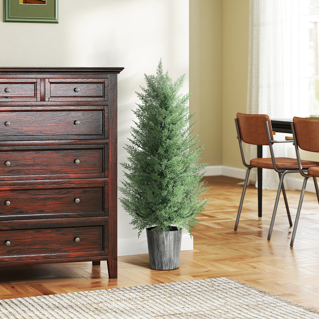 Tired of the constant upkeep real plants demand? The worry of wilting leaves and fading colours in the sun can diminish the joy of having greenery. This set of 2 HOMCOM artificial cypress trees offers a refreshing alternative. Each tree features 81 lifelike, UV-resistant leaves, providing vibrant, year-round beauty without any watering or pruning. Enjoy the lush appeal of these indoor fake plants, bringing effortless elegance and a sense of calm to your space.